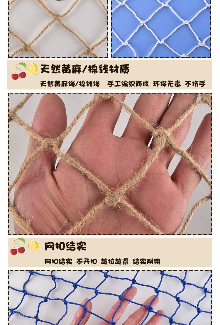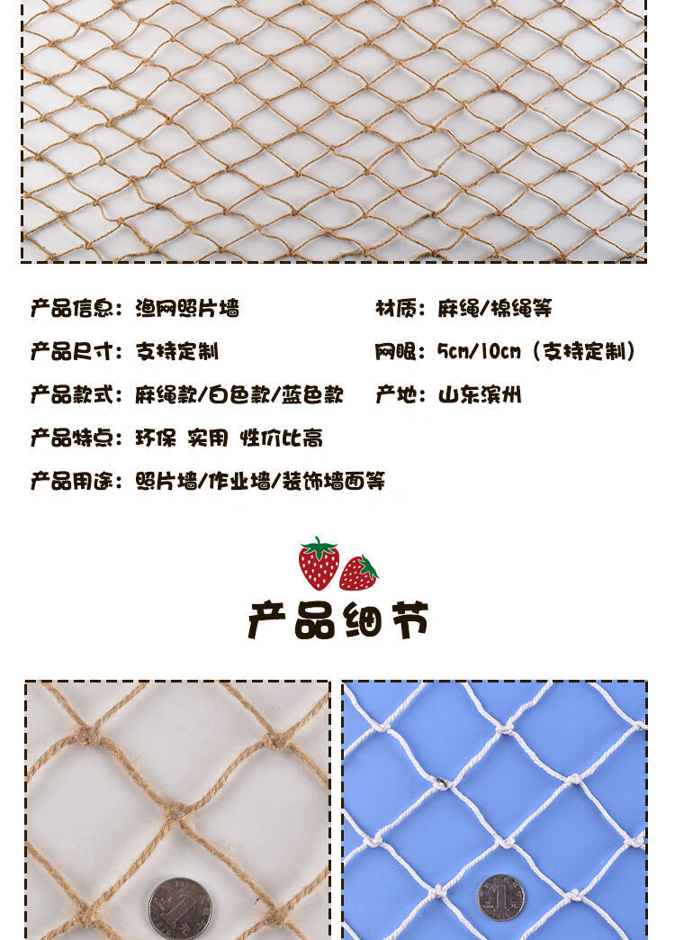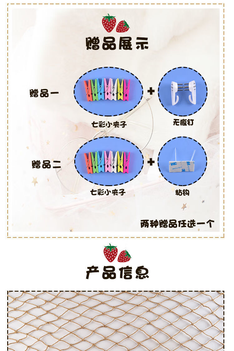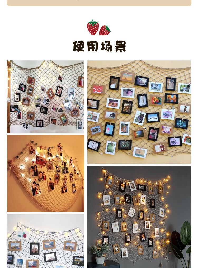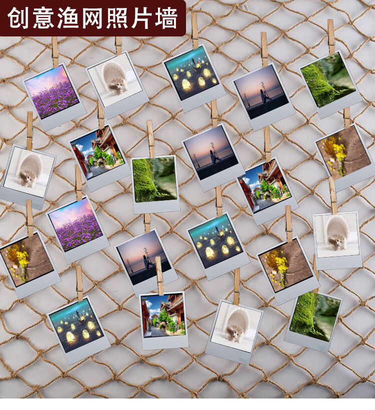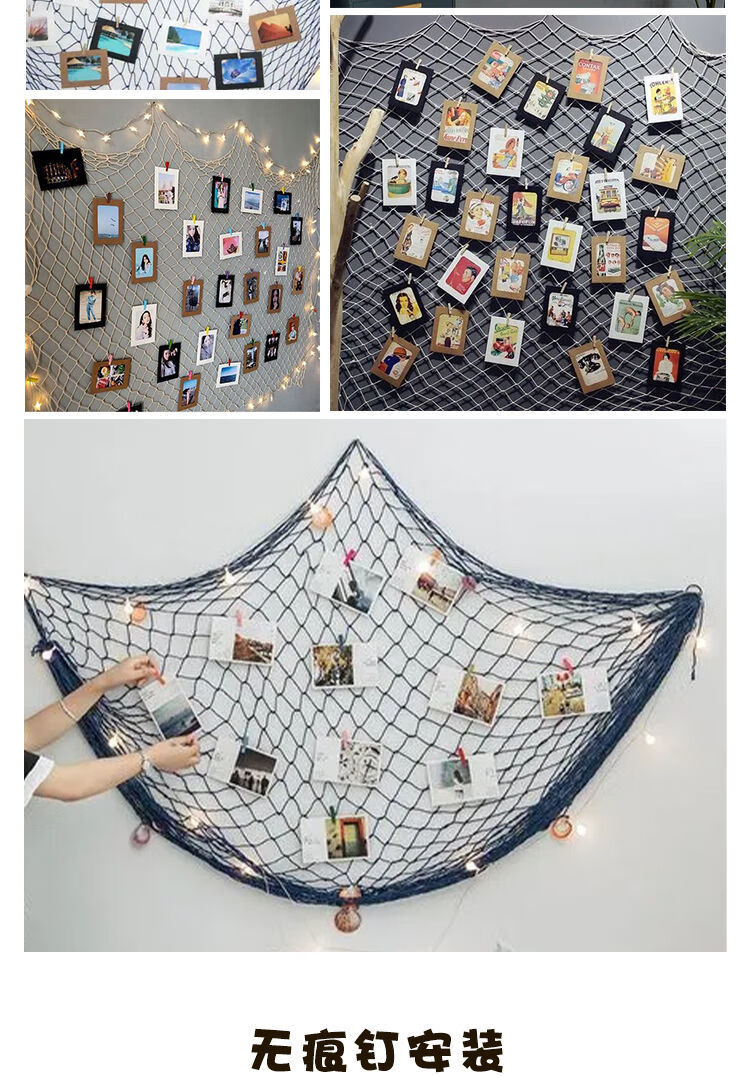 Creative cotton rope fishing net photo wall kindergarten net retro Mediterranean bar hemp rope decorative net message wall hemp rope color 1 meter * 1 meter 15 clips