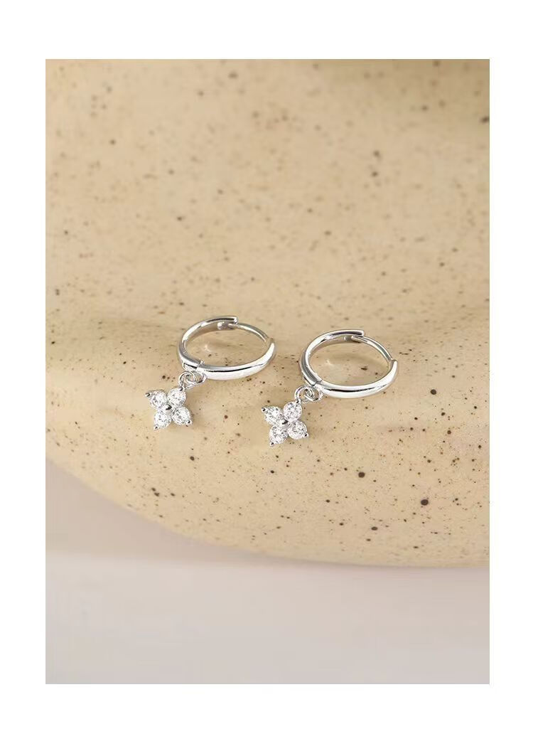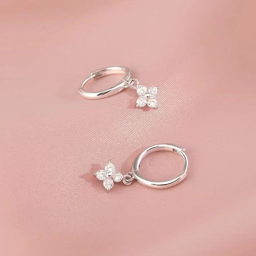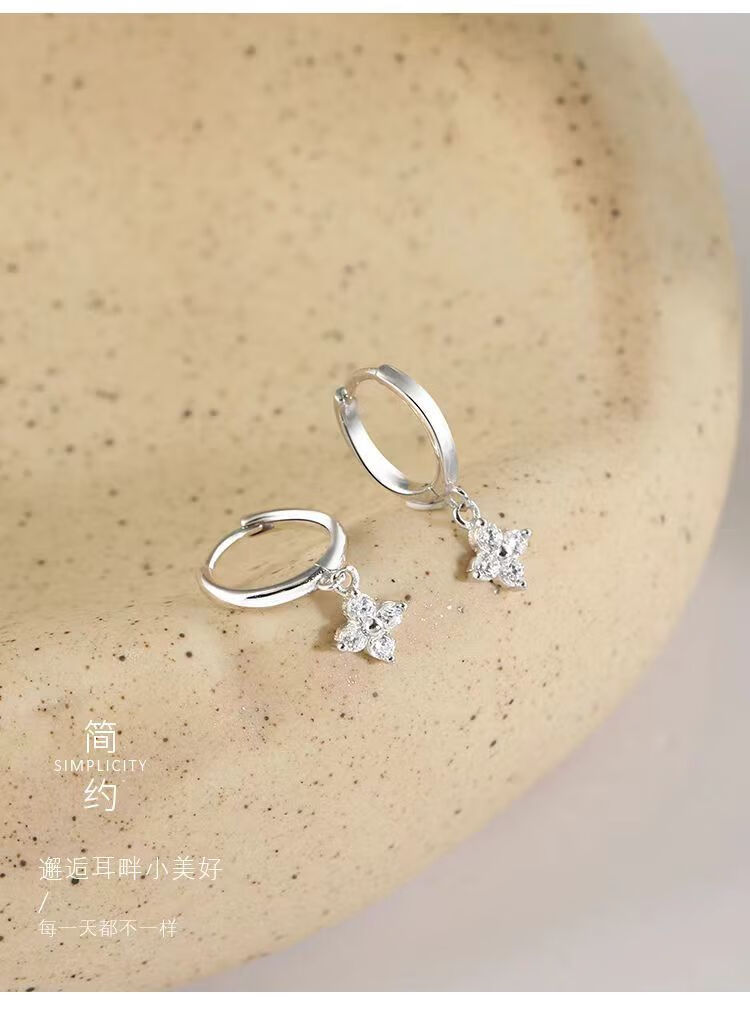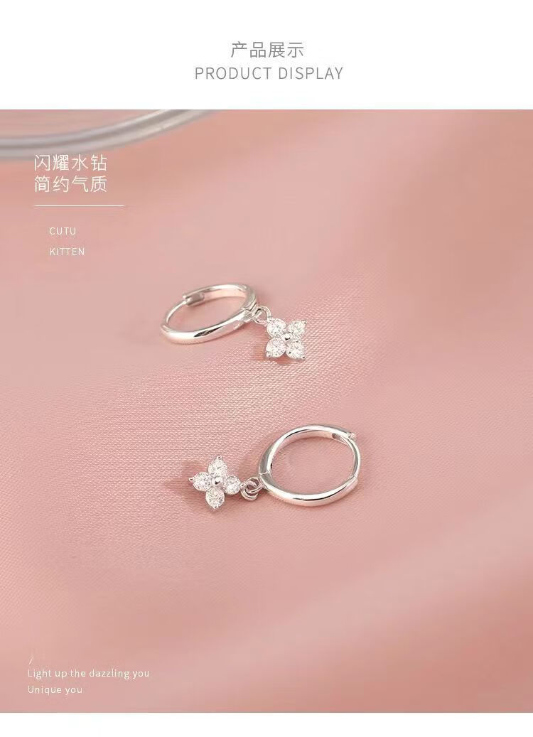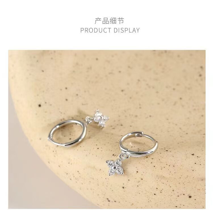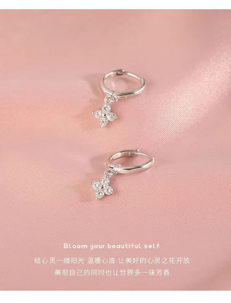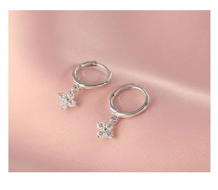 KZD999 sterling silver four-leaf clover earrings for women, slim temperament, anti-allergic earrings, niche simple earrings, earrings, lucky incarnation sterling silver earrings, same style 4.58g (sterling silver pair) same style