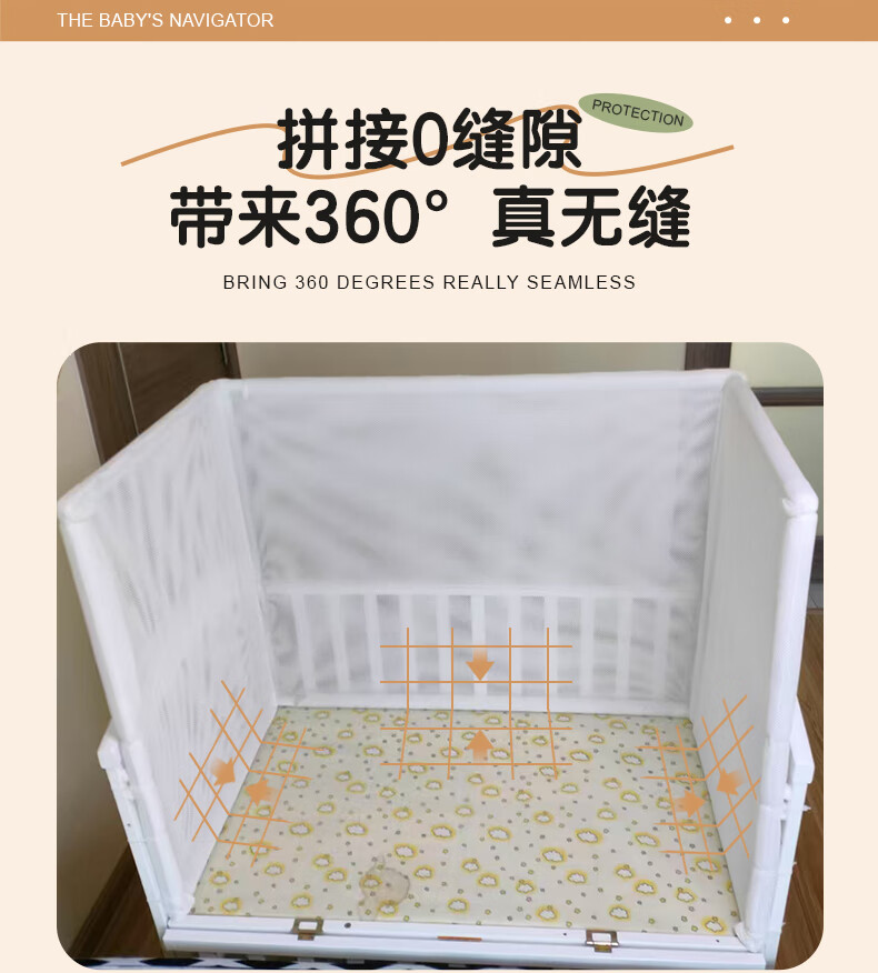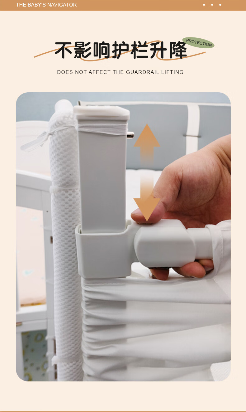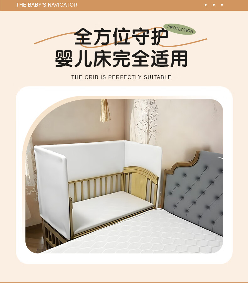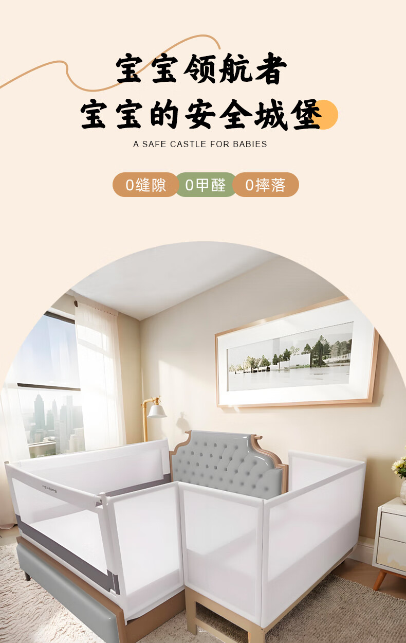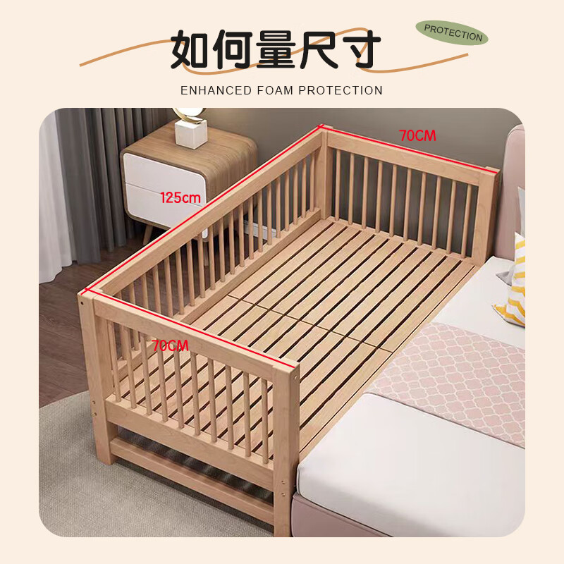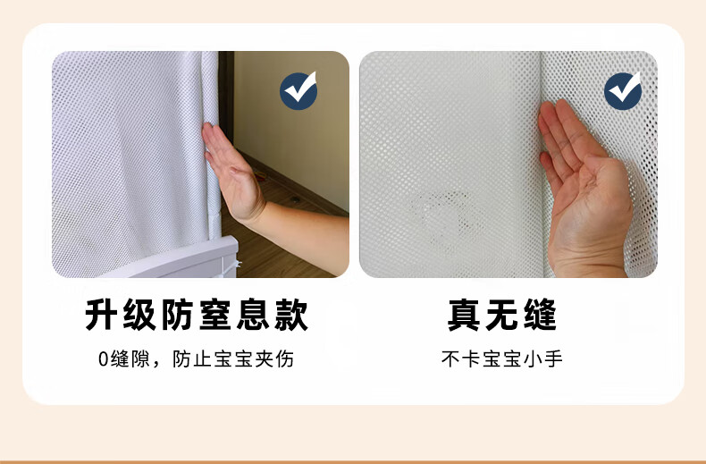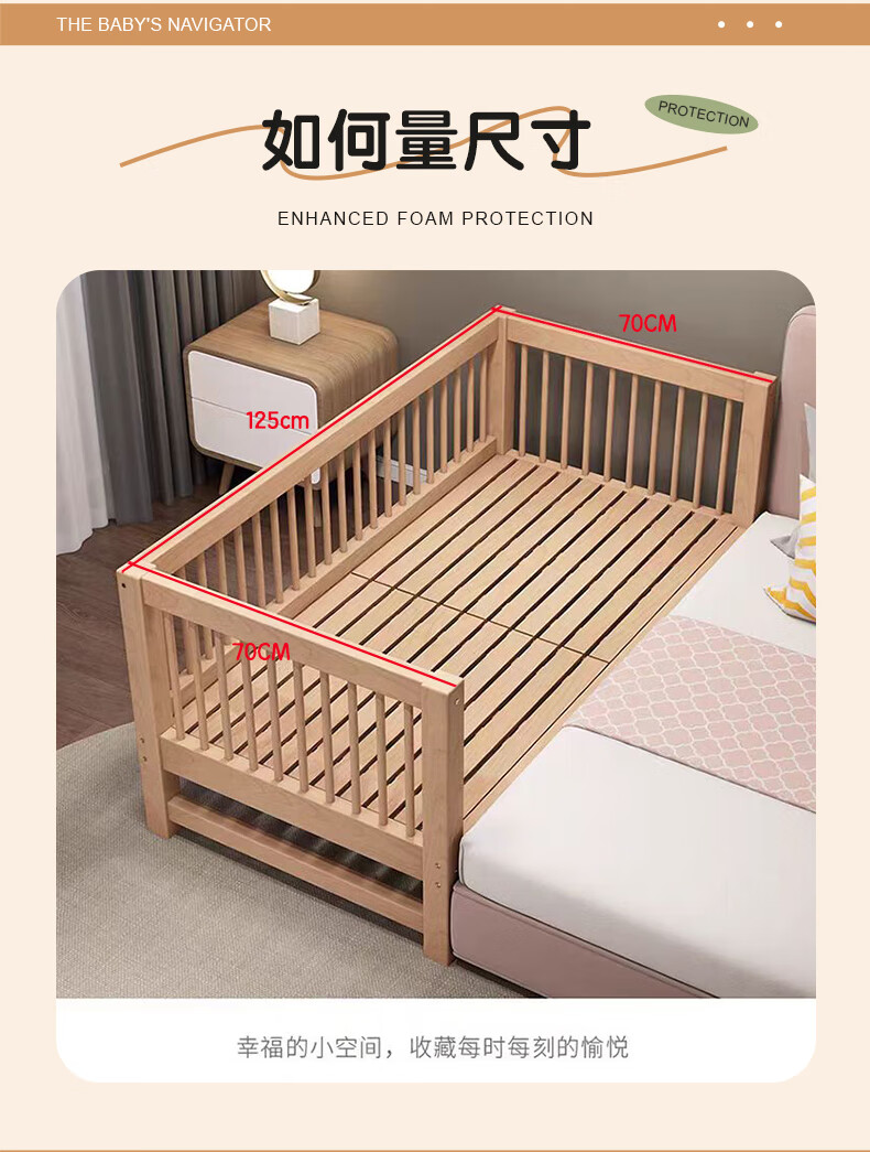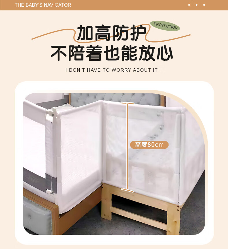 Angjifeng customized crib fence, no punching, baby crib splicing bed, heightening, anti-fall, anti-falling bed guardrail, bezel guardrail, off-white ~ customized model ~ 61-90 cm ~ single-sided installation, height 80 cm (please note the size when placing an order)