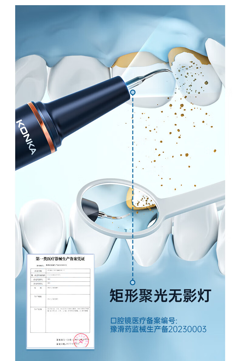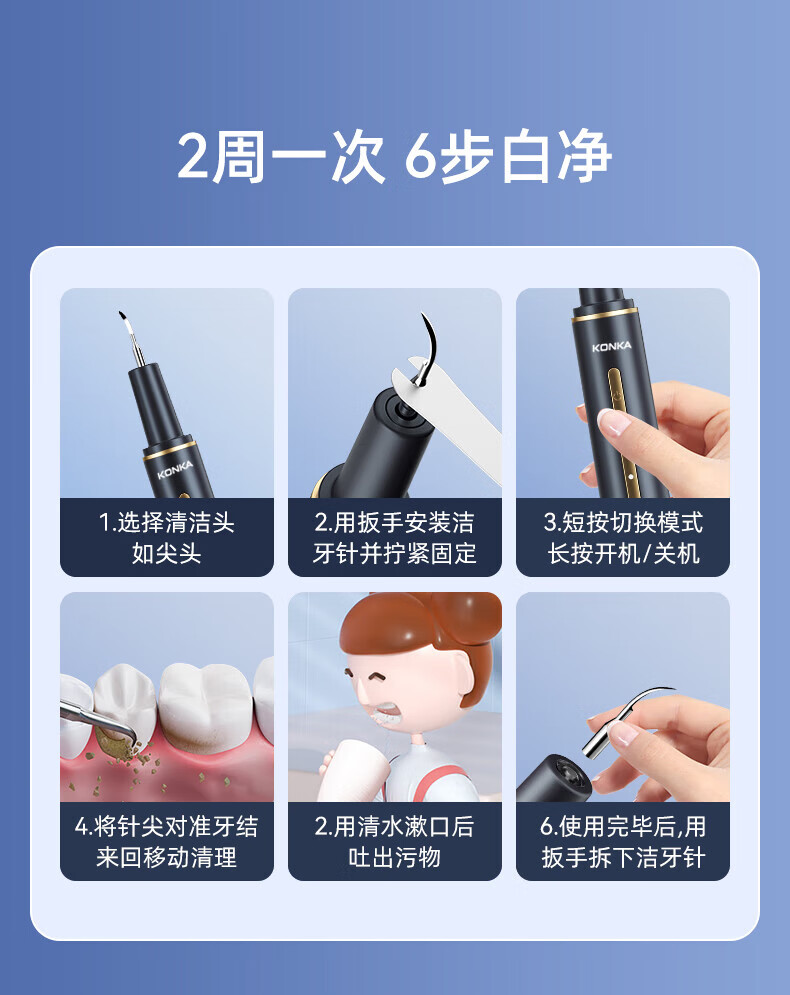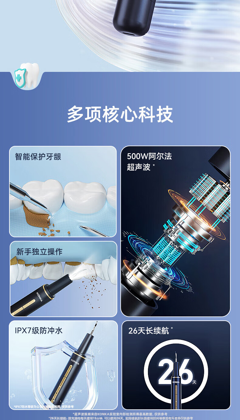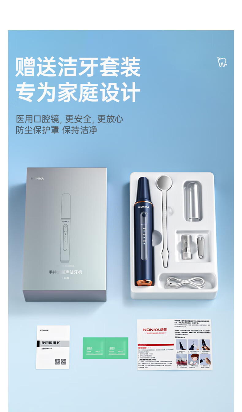 KONKA Ultrasonic Teeth Cleaner Teeth Cleaner Calculus Remover Cleans Teeth and Removes Yellow Teeth Calculus Cleaner Medical Gift Flagship Model - Galaxy Blue True Ultrasonic + Full Set of Teeth Cleaning Tools