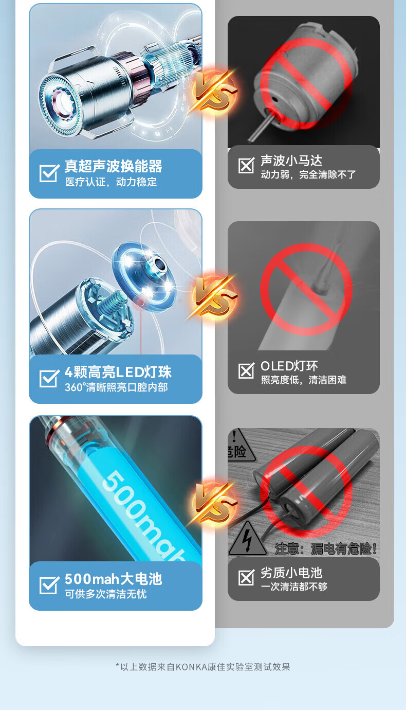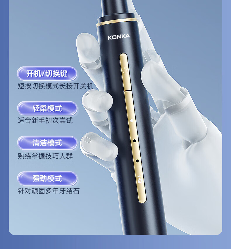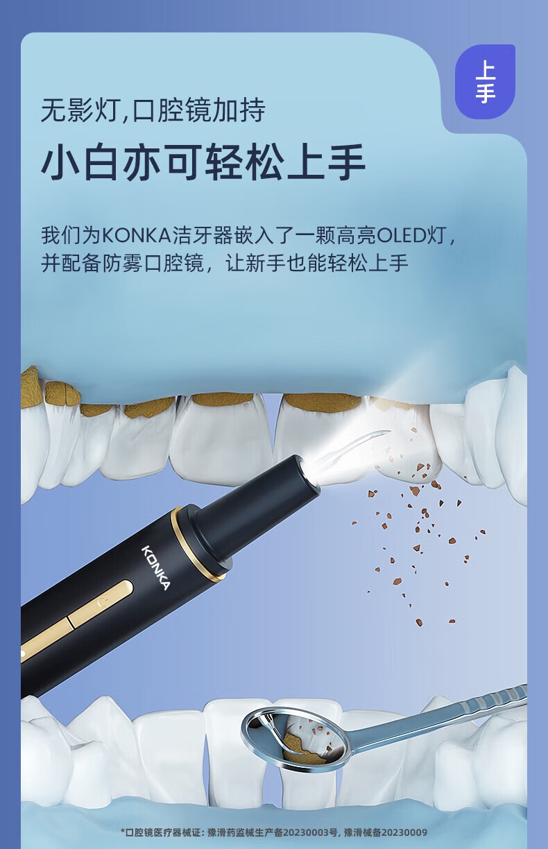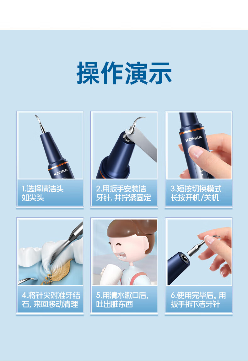 KONKA Ultrasonic Teeth Cleaner Teeth Cleaner Calculus Remover Cleans Teeth and Removes Yellow Teeth Calculus Cleaner Medical Gift Flagship Model - Galaxy Blue True Ultrasonic + Full Set of Teeth Cleaning Tools