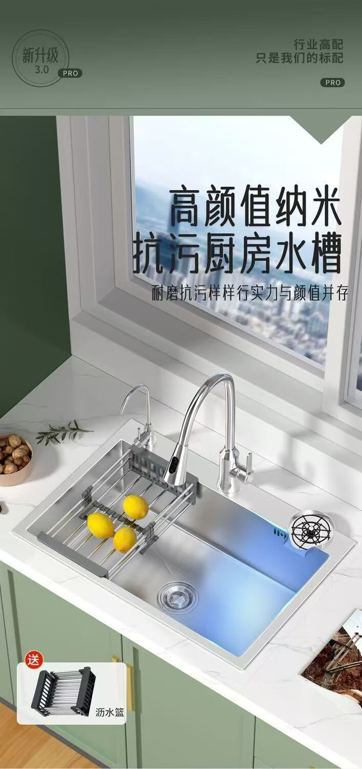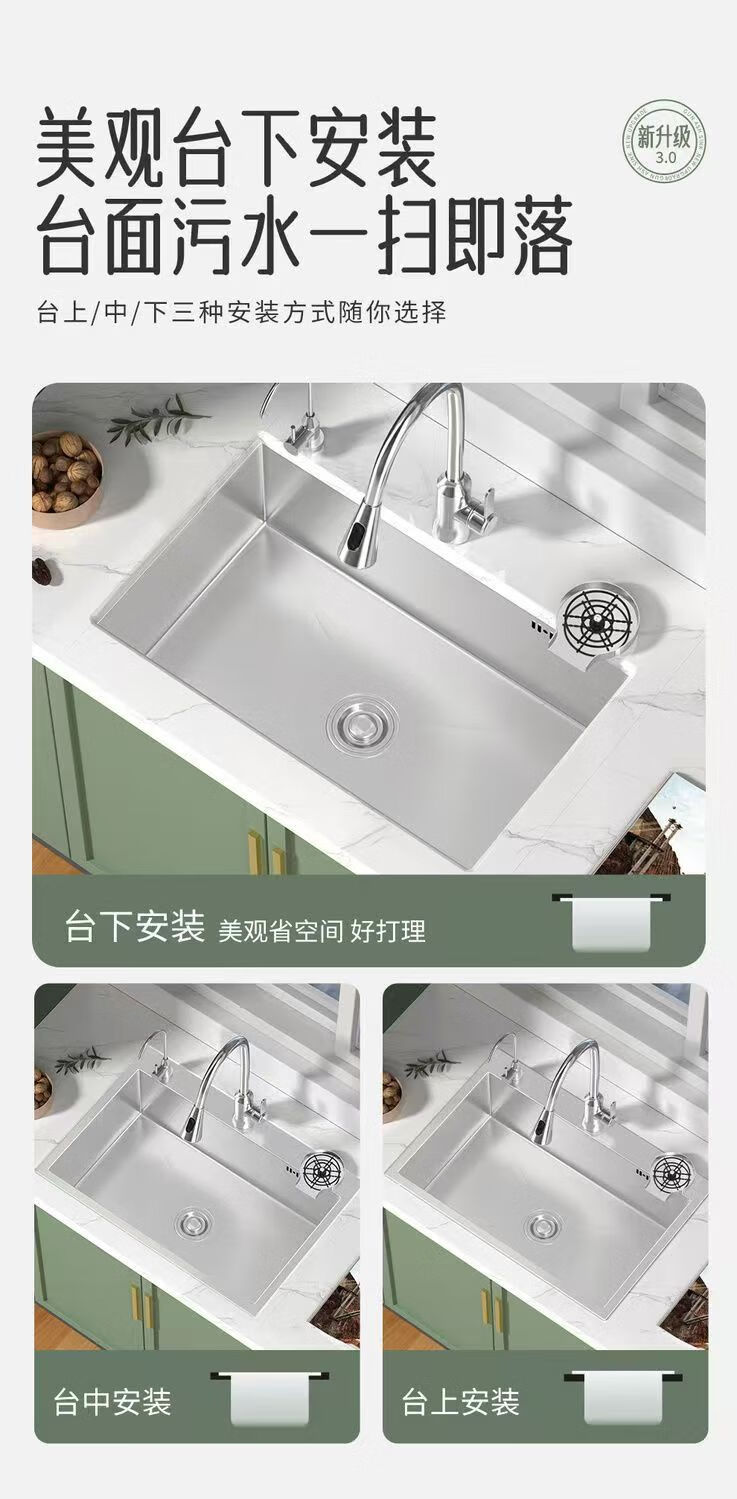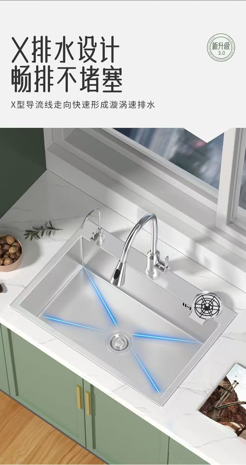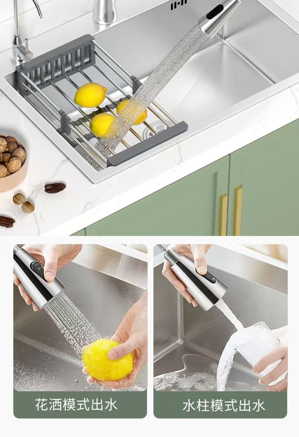 OUOETY kitchen sink single-slot thickened stainless steel dishwashing sink hand-drawn vegetable sink German craftsmanship silver thickened 45*40 pull-out faucet package