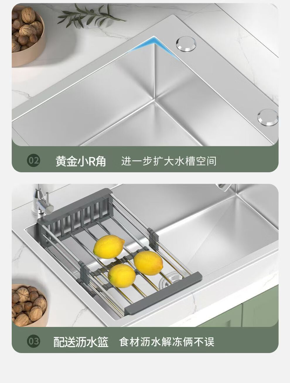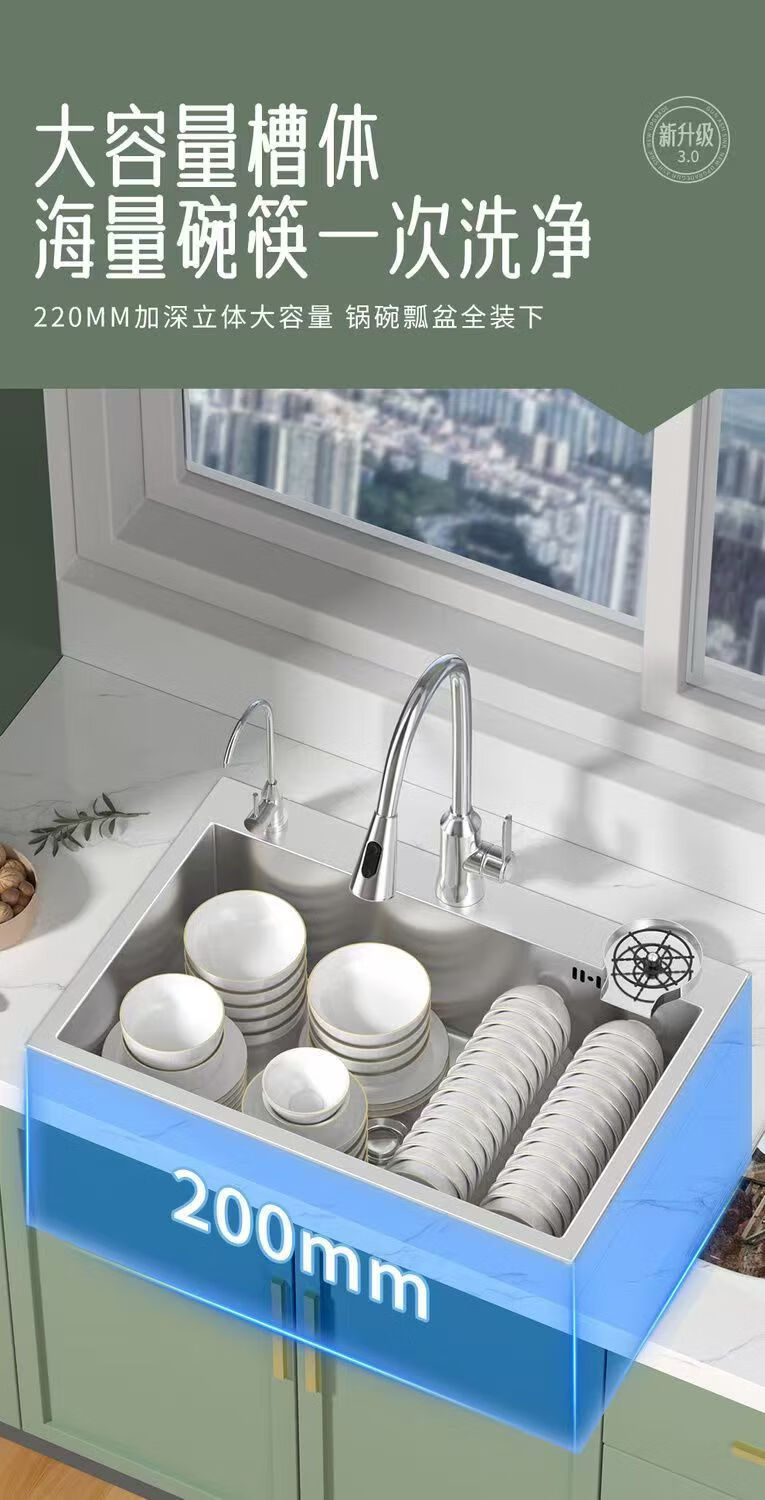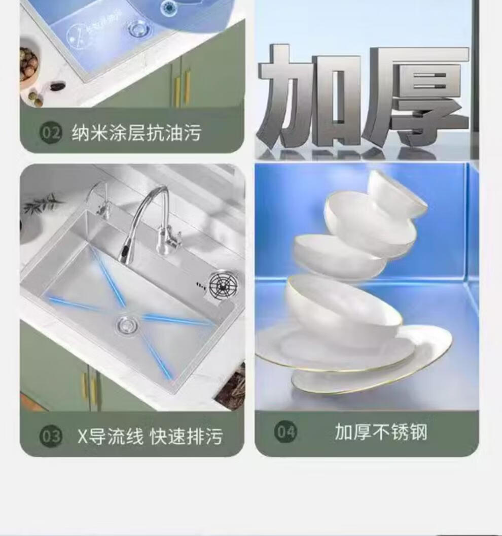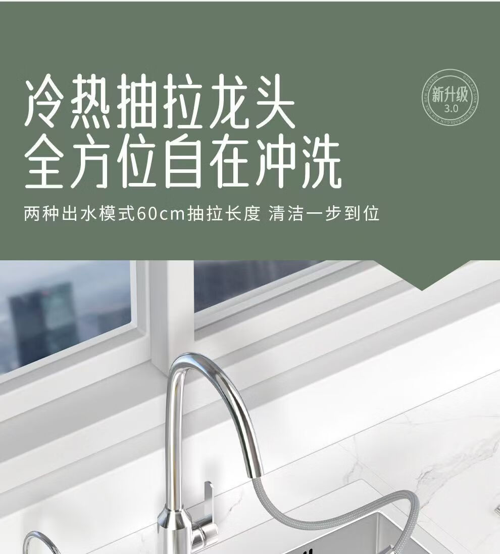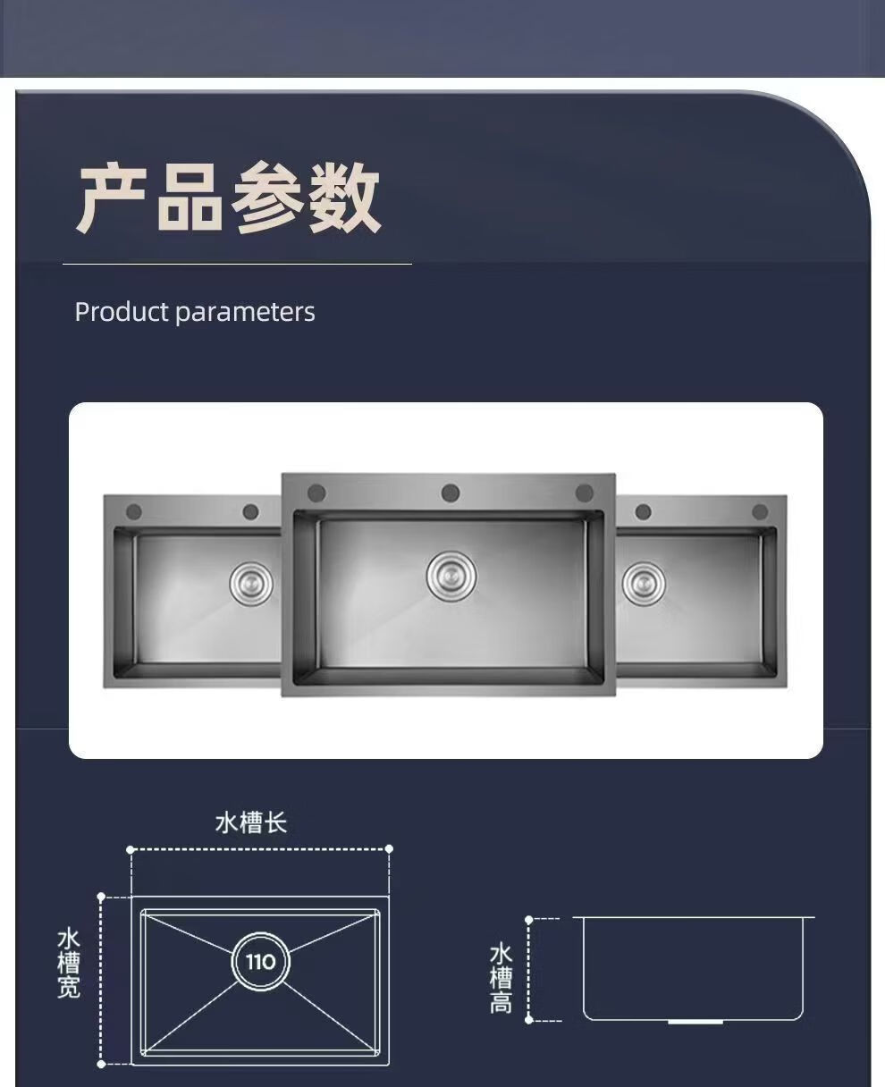OUOETY kitchen sink single-slot thickened stainless steel dishwashing sink hand-drawn vegetable sink German craftsmanship silver thickened 45*40 pull-out faucet package