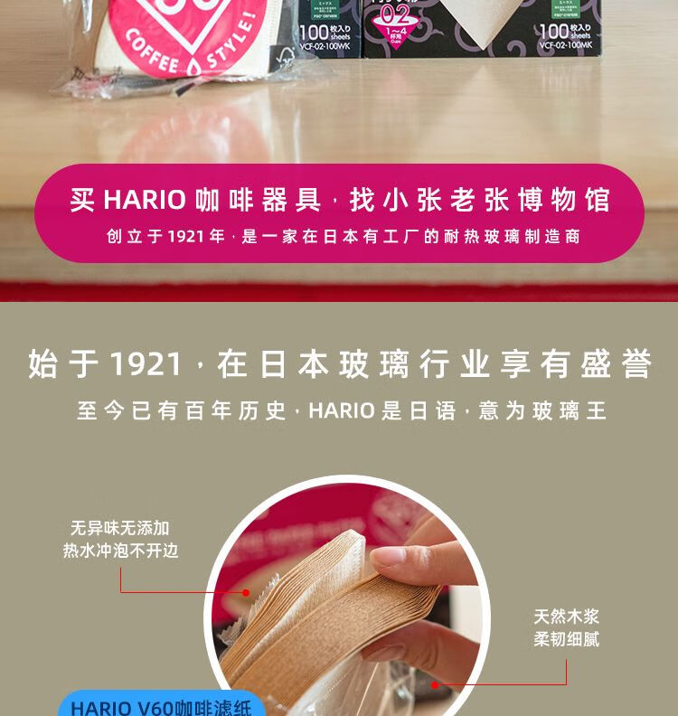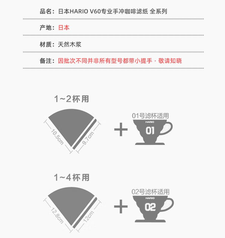 HARIO Japanese filter paper v60 hand-brewed coffee filter paper fan-shaped hand grinder v01 filter paper coffee paper v02 filter paper v01 original color box 100 pieces 0 sheets