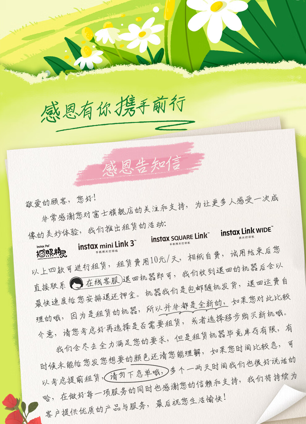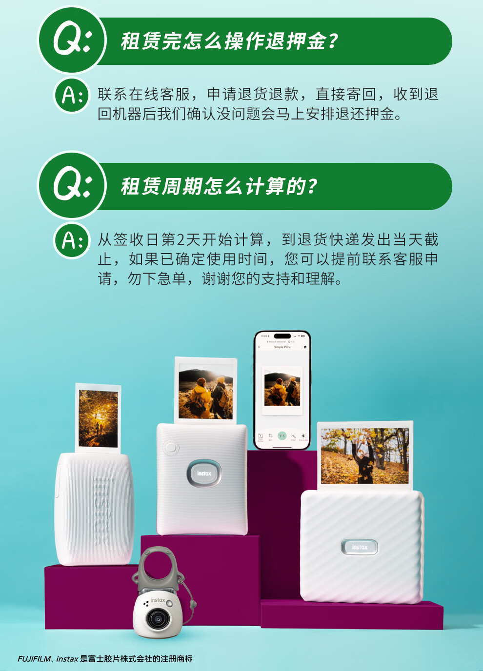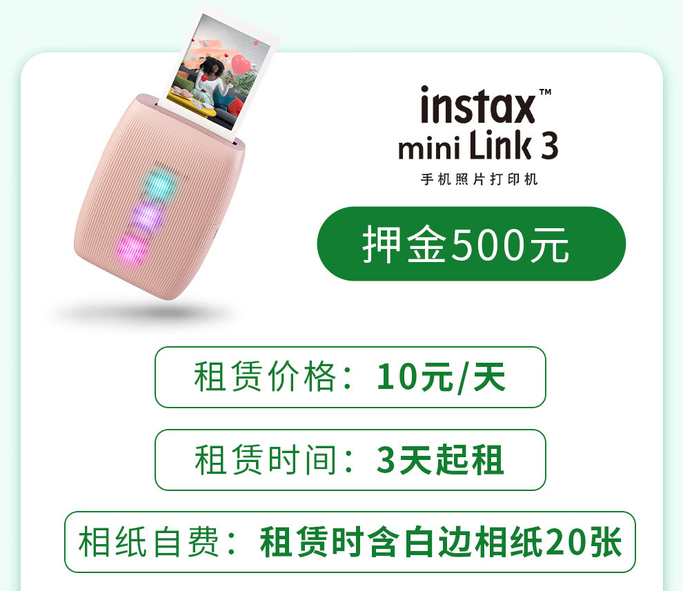 FUJIFILM instax link3 sq link wide camera link3+white border 20 photos 10 yuan/day deposit 500 yuan