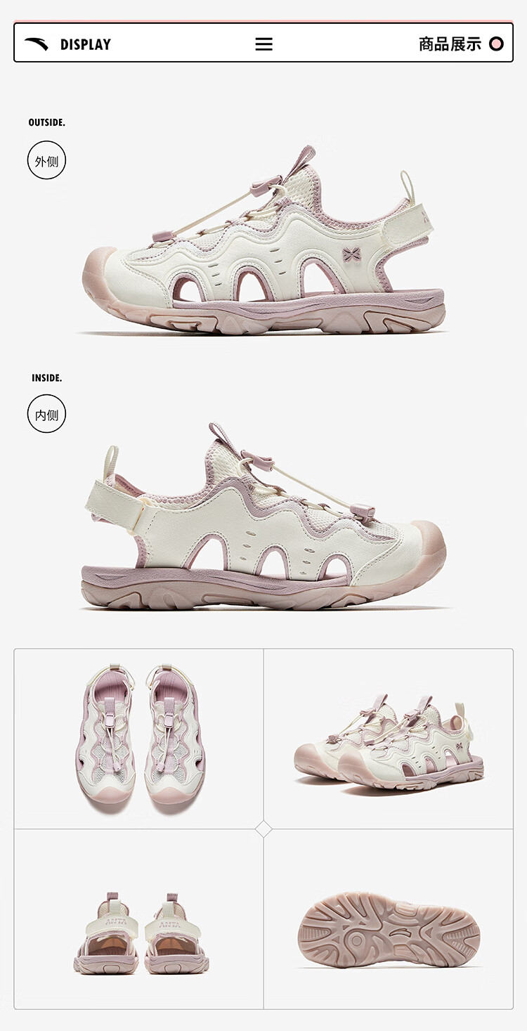 ANTA Children's Sandals Men's and Women's Big Children's Shoes 2026 Summer New Outdoor Baotou Outdoor Series Beach Shoes Girls Ivory White/Light Soft Pink-1 33 Shoe Inner Length 20.5cm