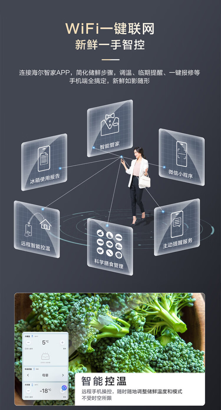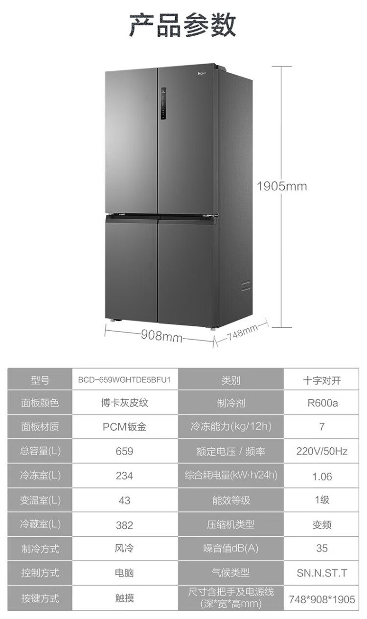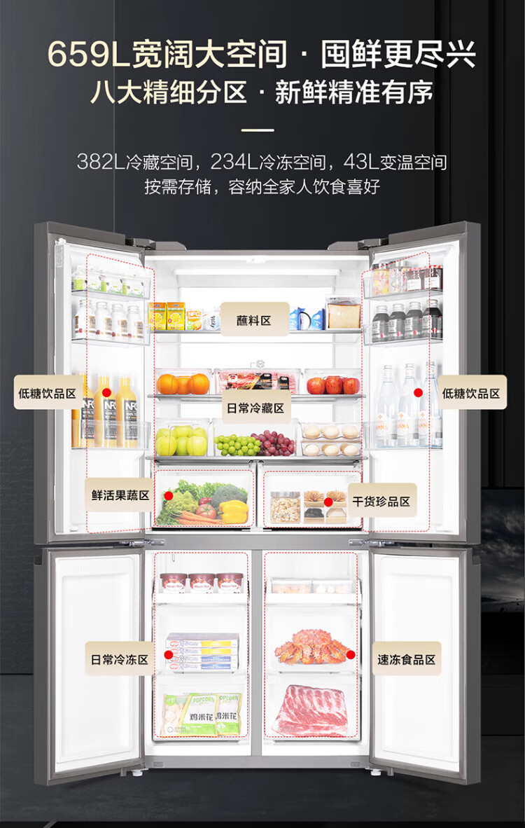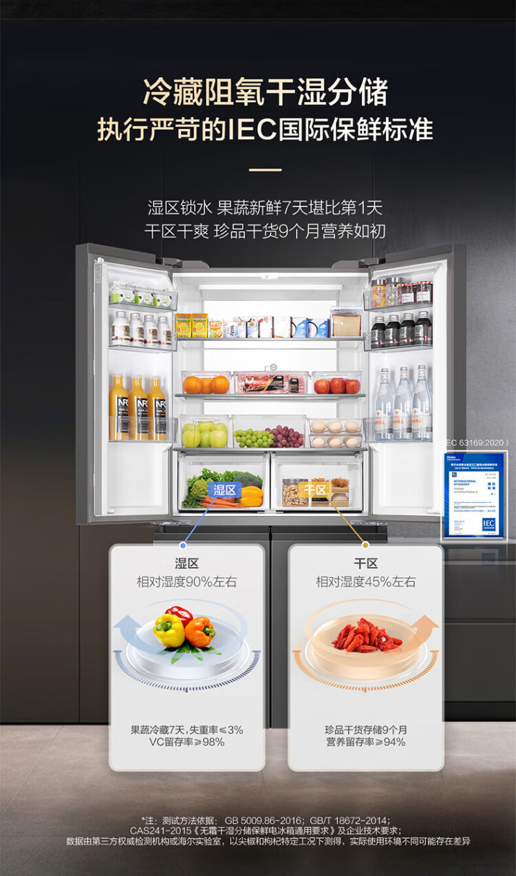 Haier refrigerator 659 liters four-door cross-door first-class energy efficiency dual frequency conversion air-cooled frost-free EPP ultra-clean system household super large capacity refrigerator government subsidy 20% 659 liter super large capacity + oxygen barrier dry and wet storage