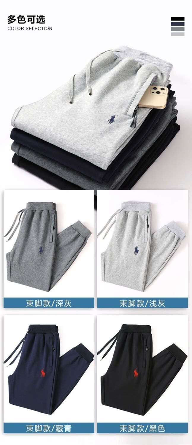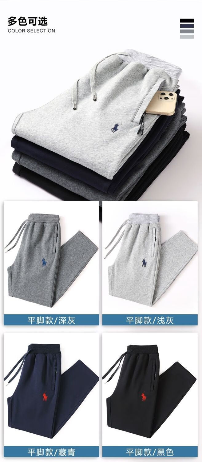 POLO SPORT American Ralph Lauren 2025 spring new style horse logo embroidered pure cotton loose casual pants large size legged trousers black/straight 3XL