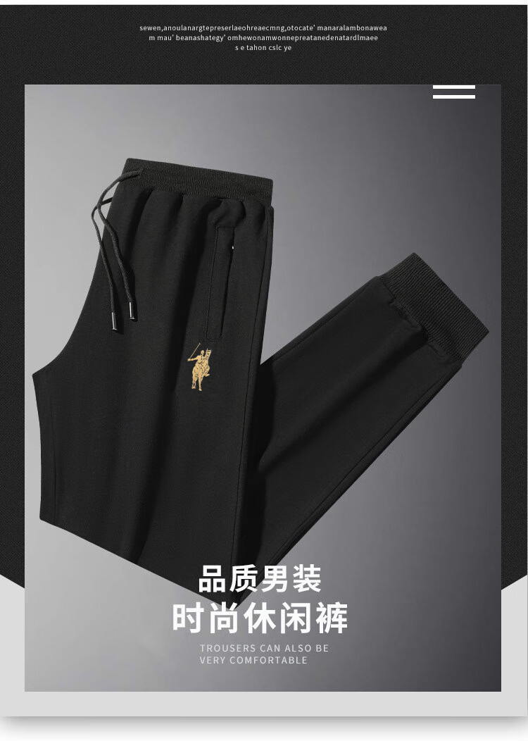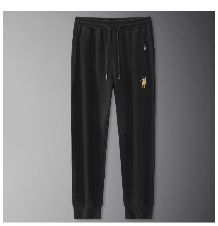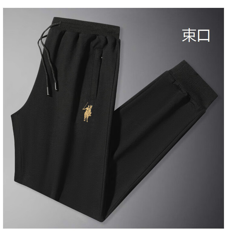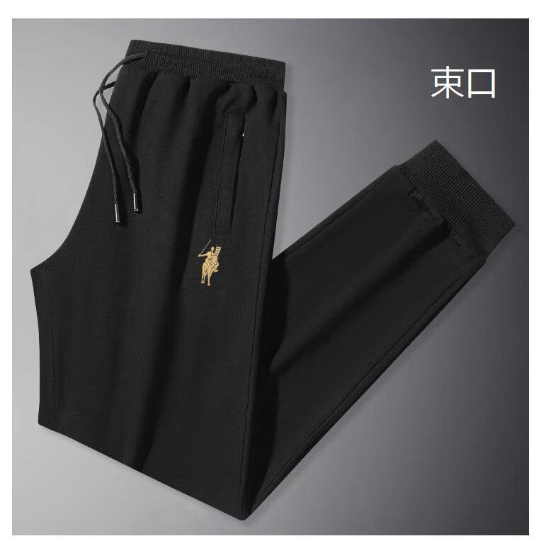 POLO SPORT American Ralph Lauren Spring and Autumn Men's Casual Pants Loose Drawstring Trendy Brand Sweatshirts Sports Men's Pants Versatile Black (Flat Mouth) 2XL