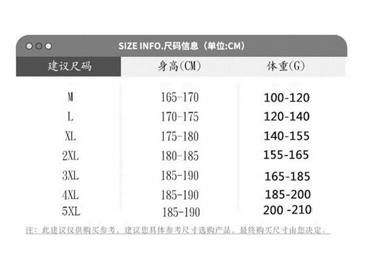 China (cm) 165 / 88-90 170 / 96-98 175 / 108-110 180 / 118-122 185 / 126-130