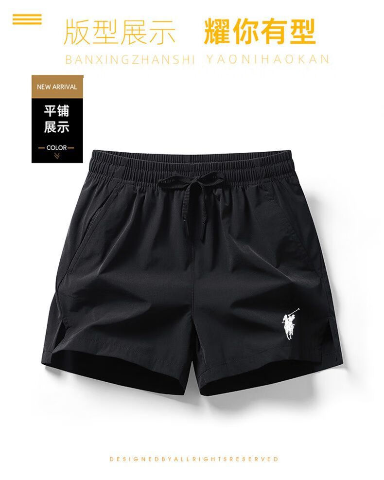 POLO SPORT American Ralph Lauren summer sports quick-drying pants three-quarter pants solid color loose POLO beach pants men's casual pants DK-260 black 5XL