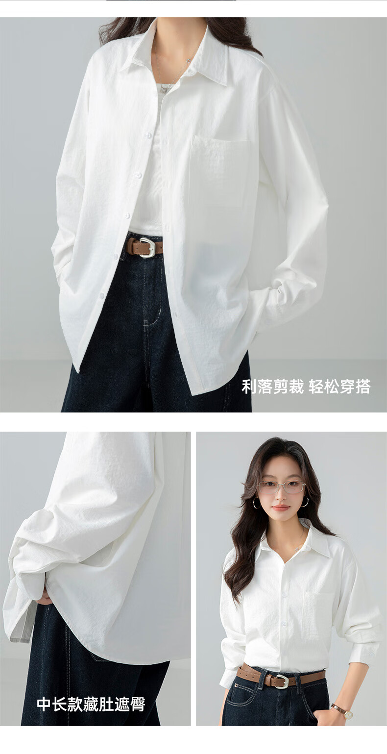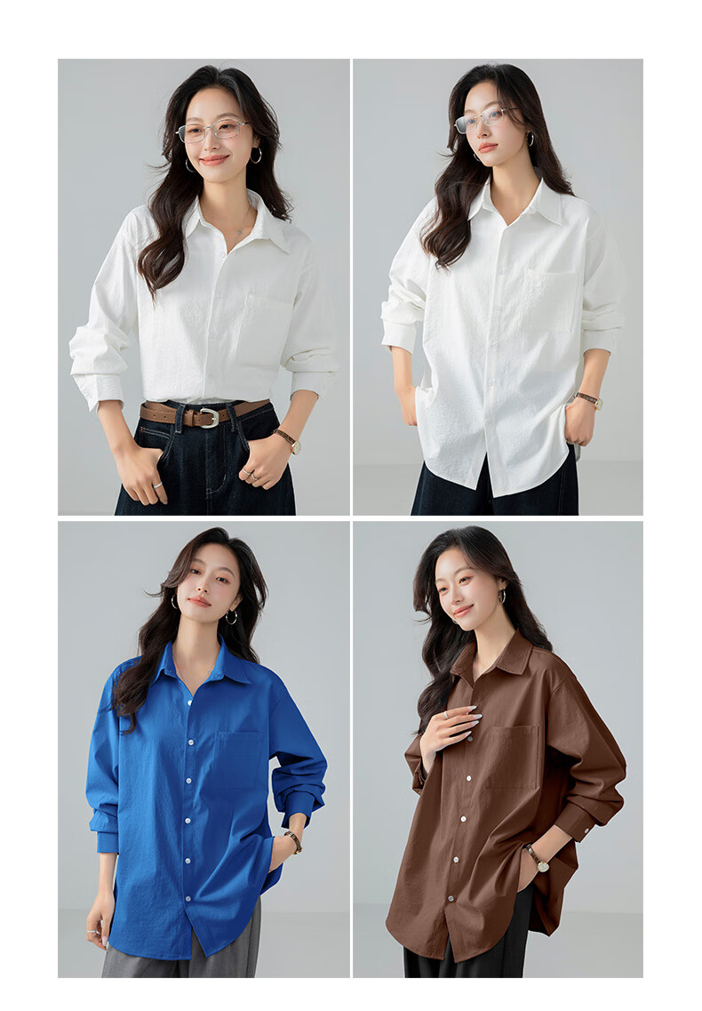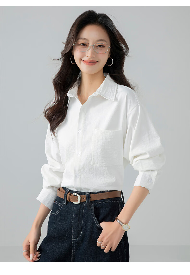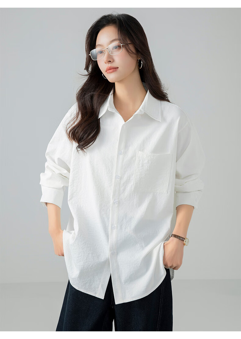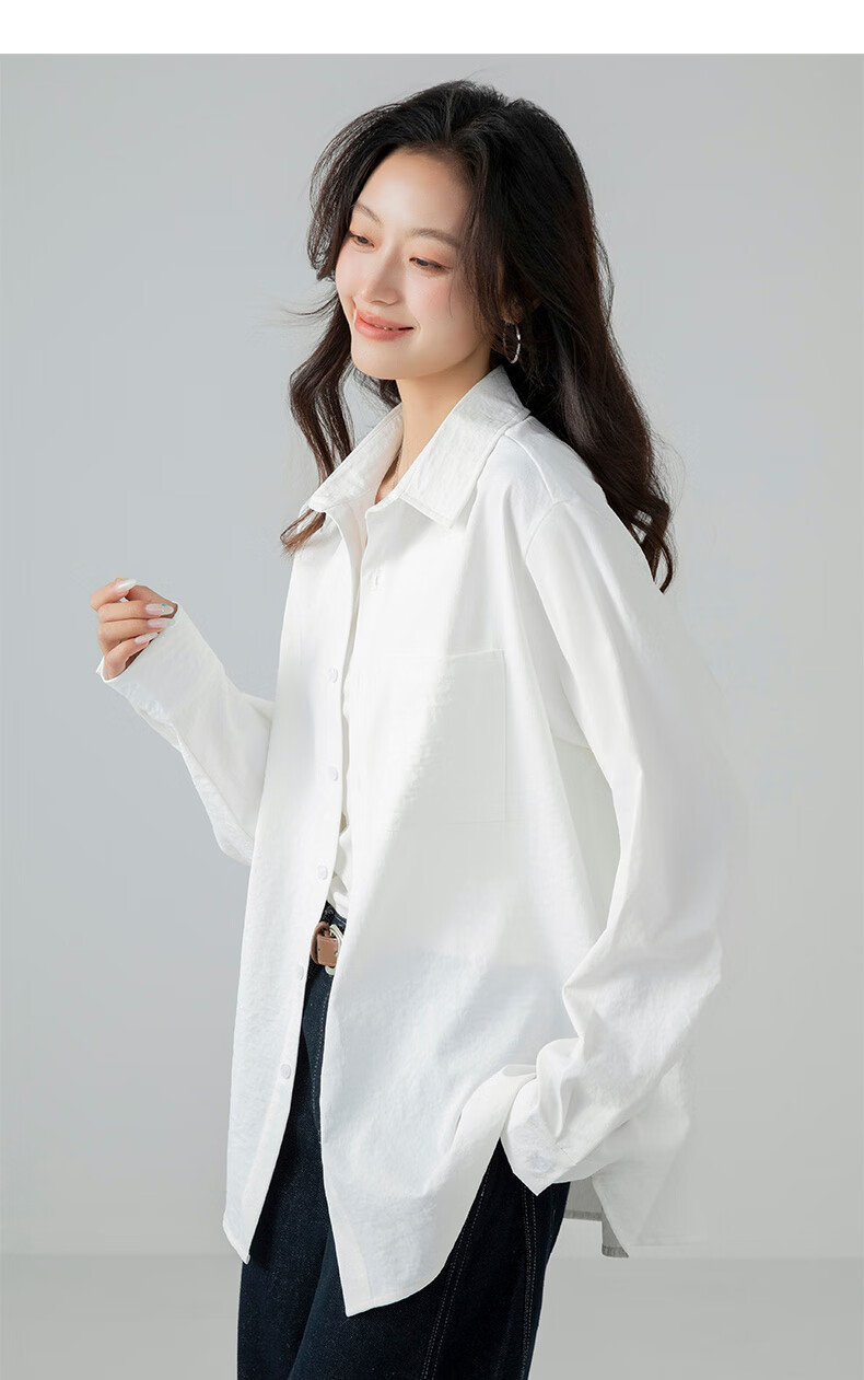 The same brand of women's tops and shirts for women 2025 new loose casual long-sleeved shirts, jackets, shirts, white M recommended (120-140 Jin Jin equals 0.5 kg) loose version