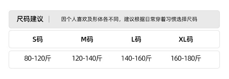 China (cm) 165 / 88-90 170 / 96-98 175 / 108-110 180 / 118-122 185 / 126-130