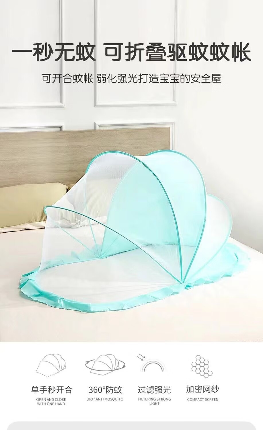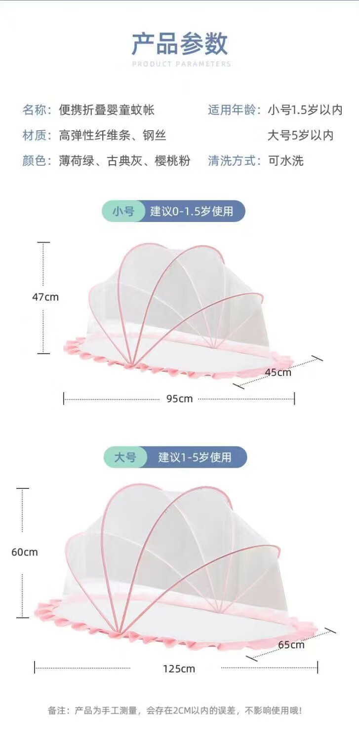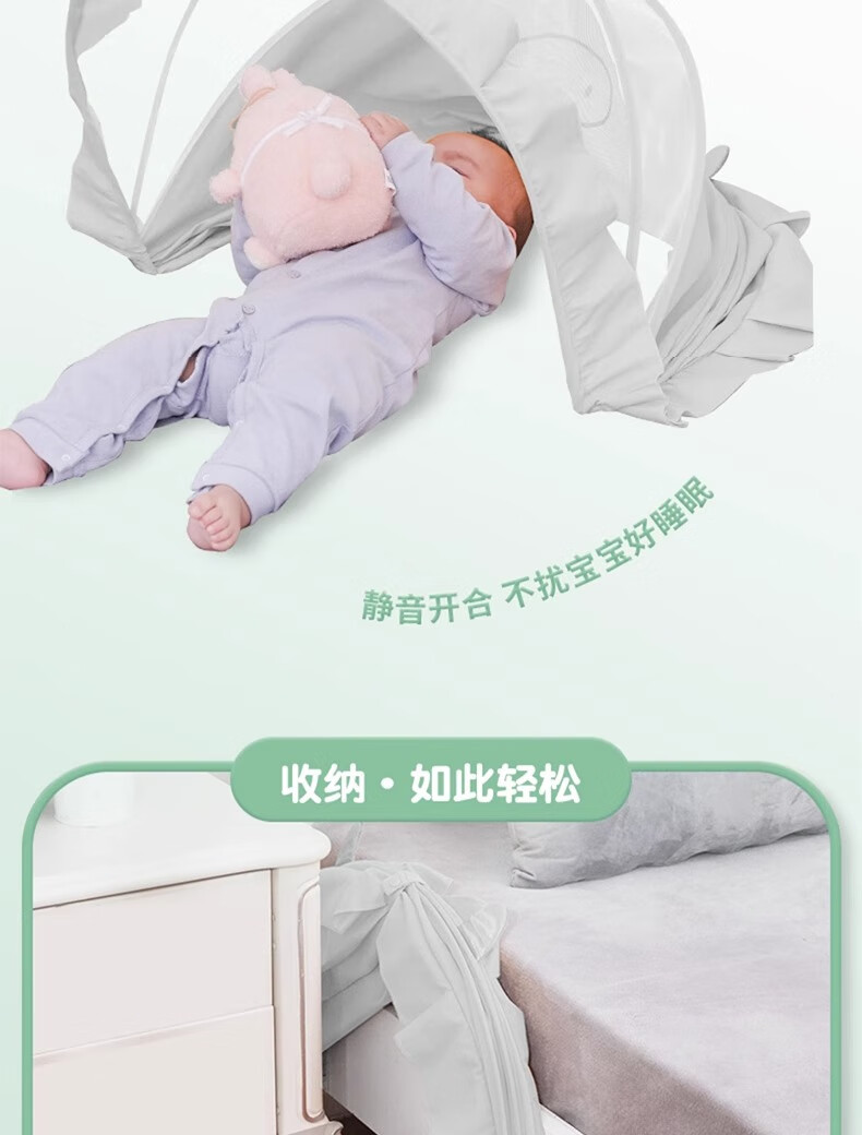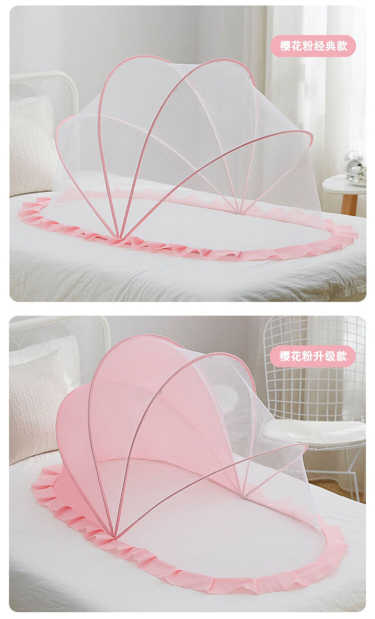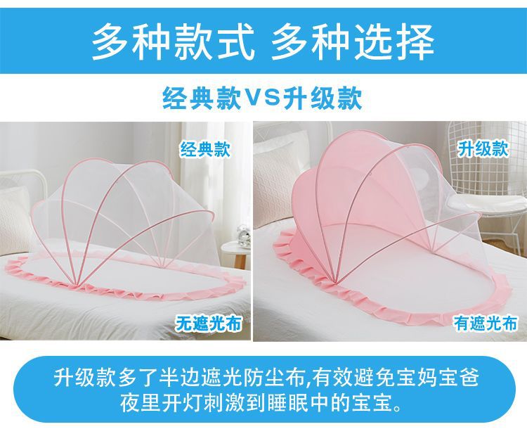 婴儿床上蚊帐罩新生儿童宝宝全罩式通用可折叠遮光免安装 粉色【升级遮阳款】-可折叠免安 适用【0-1岁宝宝】95*46*46