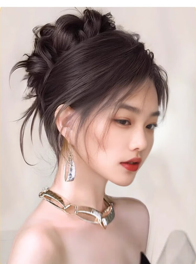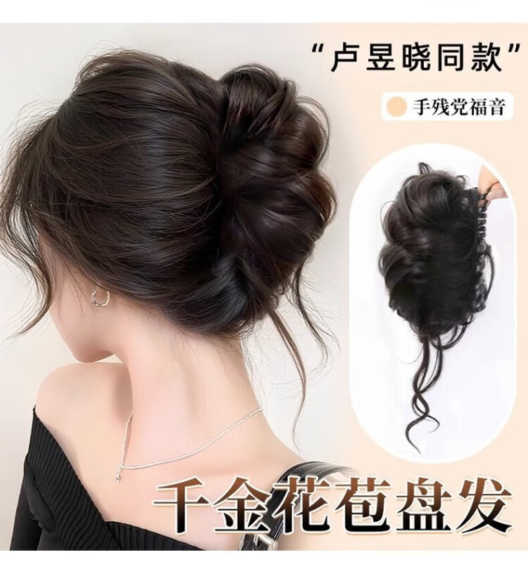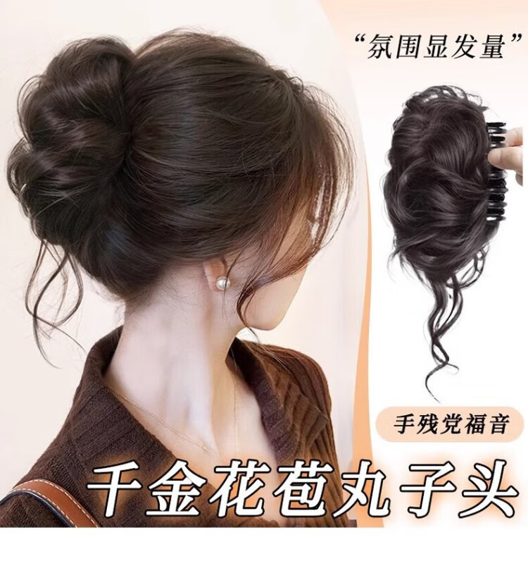 Yingtang grab clip ball hair band female daughter's hair bud internet celebrity fluffy artificial human wig ancient gentle side-tied hair bag grab clip daughter hair bag-brown black