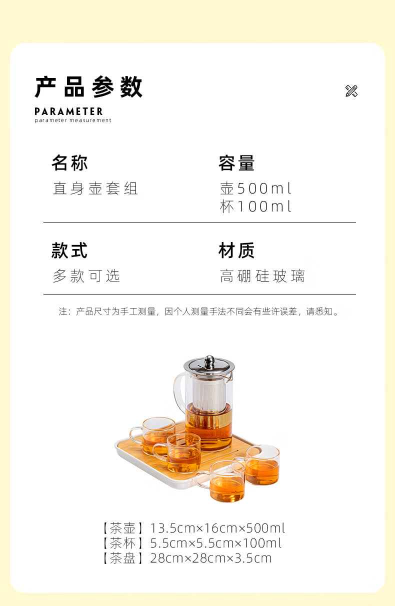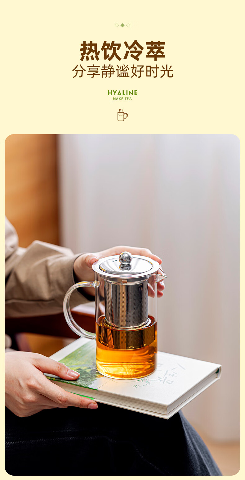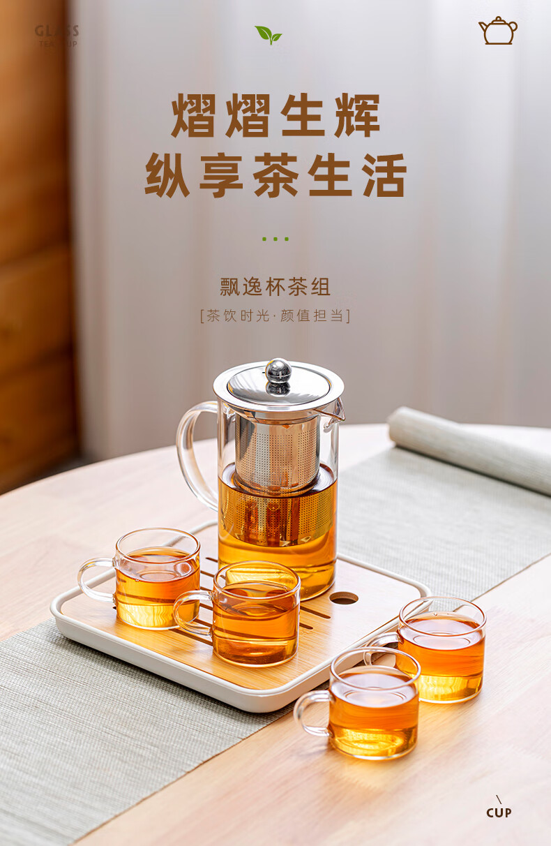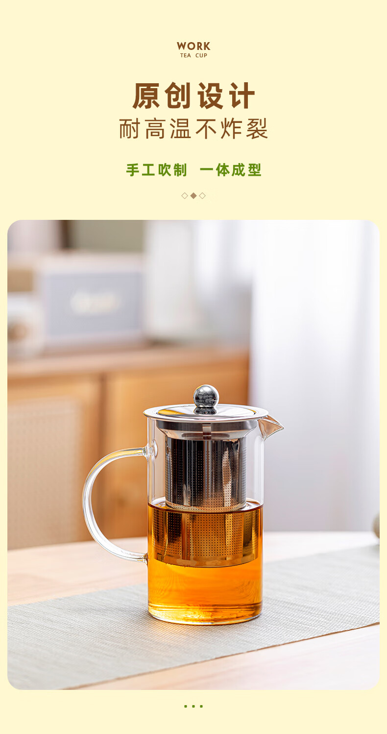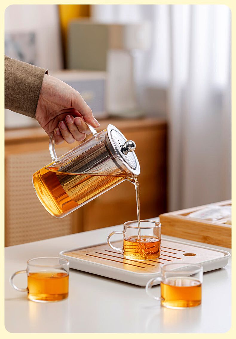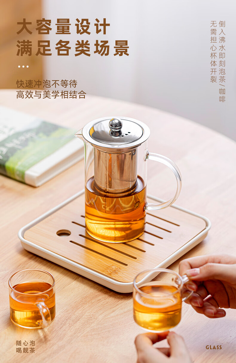 Straight teapot tea water separation high borosilicate glass stainless steel liner tea set set tea brewing teapot straight steel leaky kettle 350ML