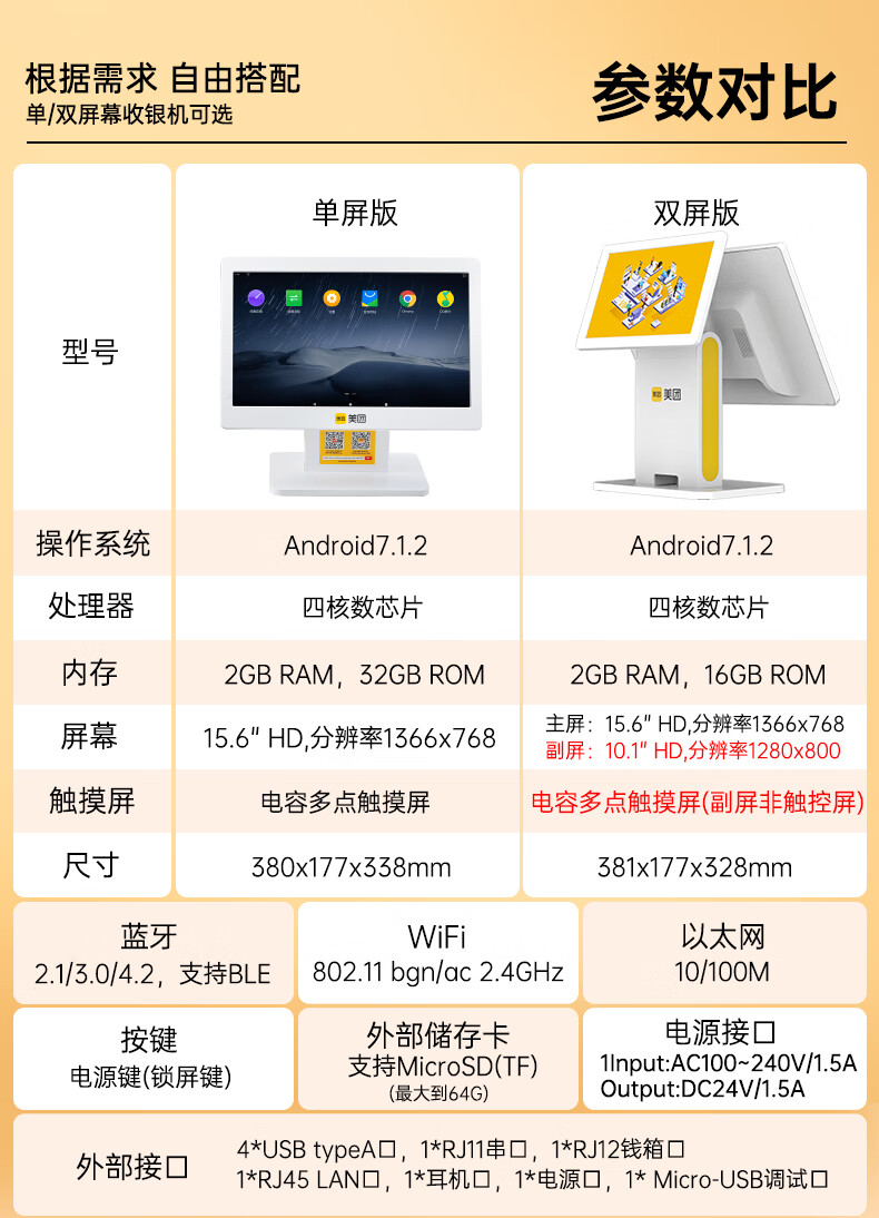Meituan cash register touch screen electronic cash register for catering restaurants take-out milk tea special scanning code ordering machine cashier system management all-in-one business intelligent collection code payment catering retail 1 single screen cash register + small ticket machine + scanning box