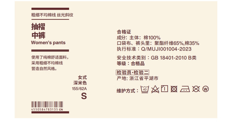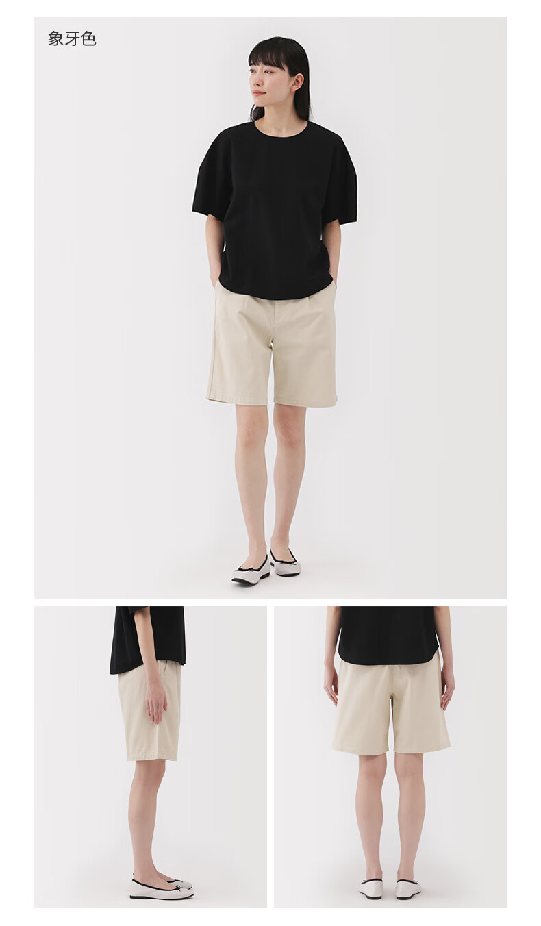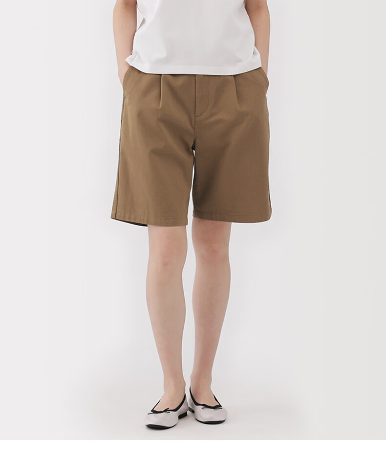 MUJI Women's Uneven Thickness Cotton Thread Mercerized Twill Pleated Pants Women's Pants 25 Years Summer Shorts Women's Dark Beige M (160/66A)