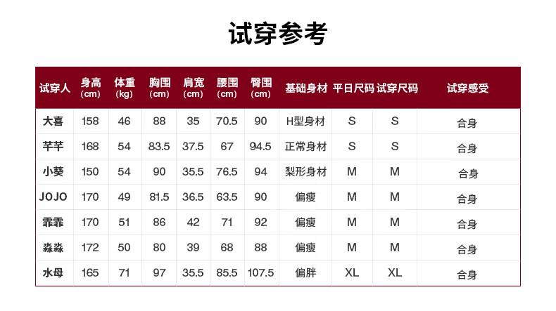 China (cm) 160-165/84-86 165-170 / 88-90 167-172 / 92-96 168-173 / 98-102 170-176 / 106-110