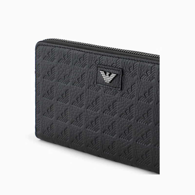 Armani EA Men's Wallet Embossed Eagle Pattern Black Calfskin Zipper Opening Horizontal Coin Purse 2025 New Black Regular