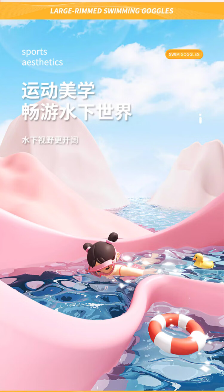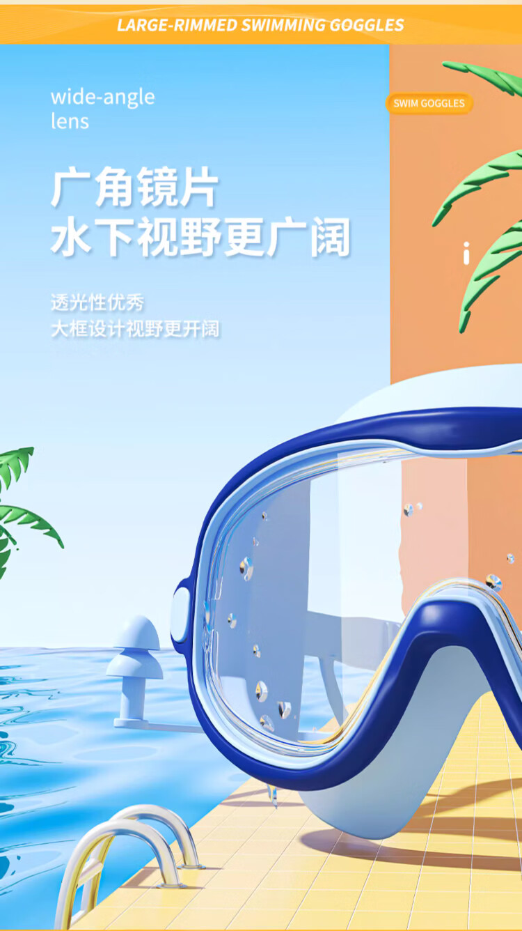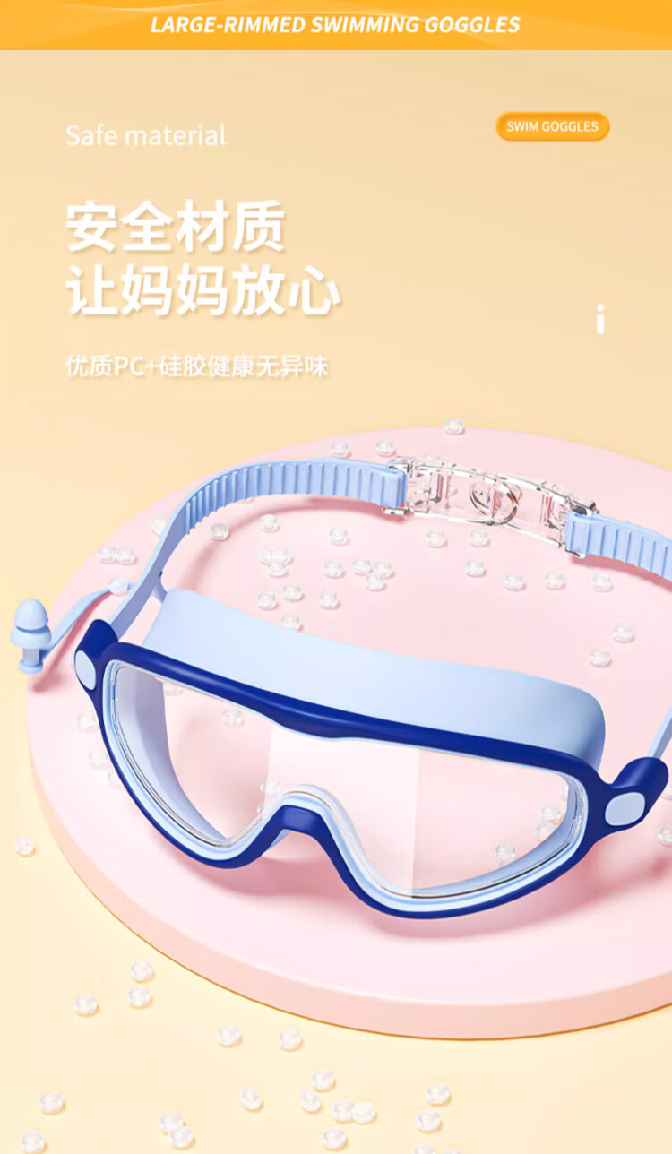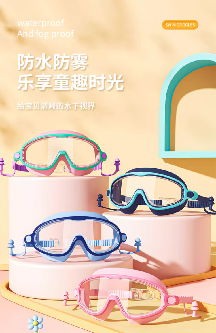 Children's swimming goggles snap-on high-definition waterproof and anti-fog swimming goggles nose clip one-piece earplugs swimming equipment set blue and white-boxed 365