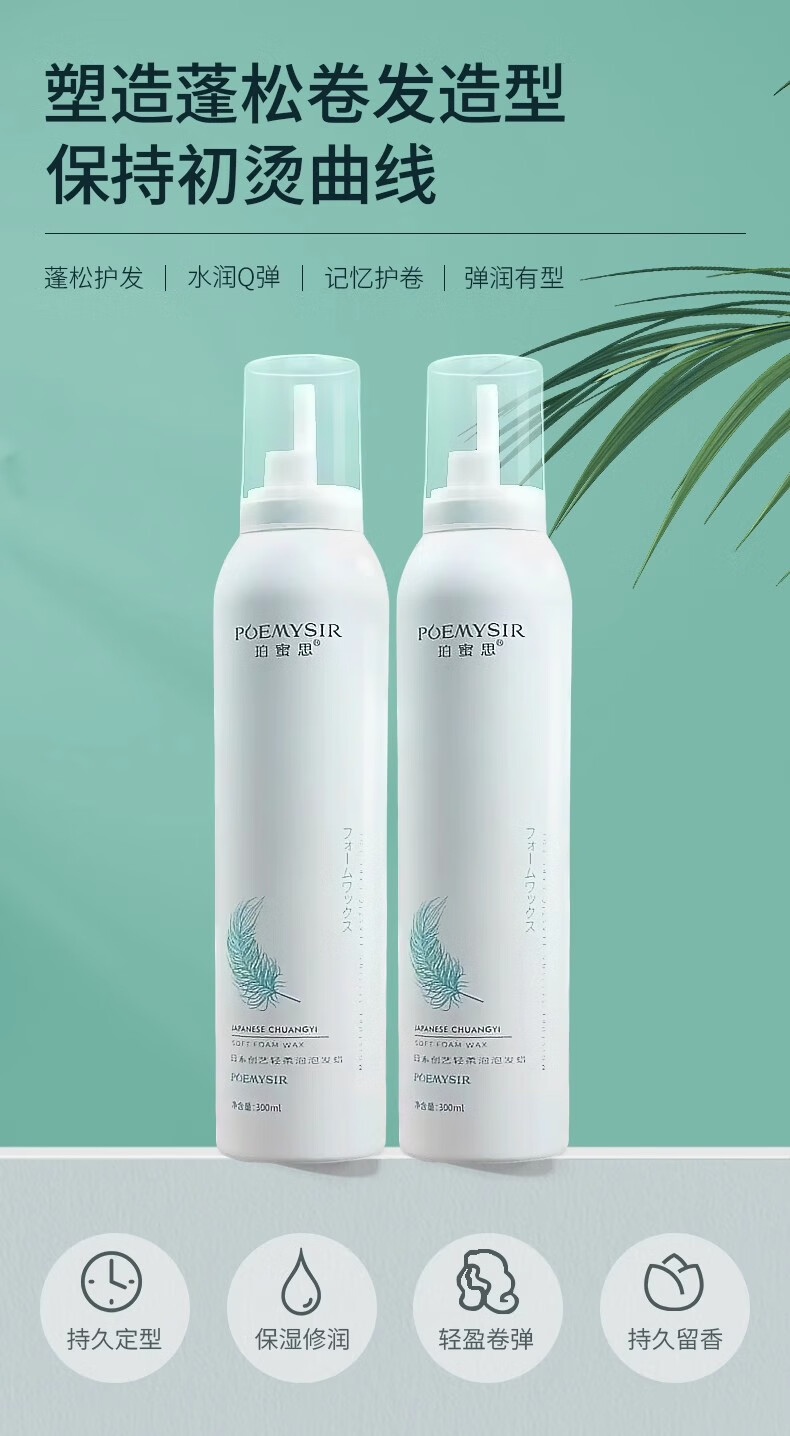 Permis Permis Foam Hair Wax for Curly Hair Moisturizing and Fluffy French Perm Elastic Women's Bubble Hair Gel Mousse Styling Men's Hair Salon Styling Foam Hair Wax 2 Bottles