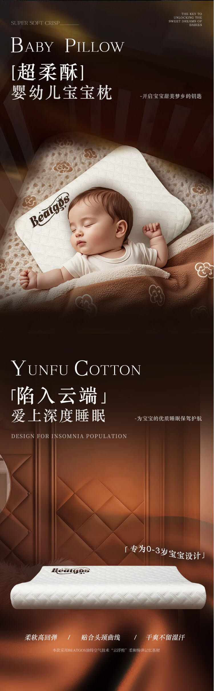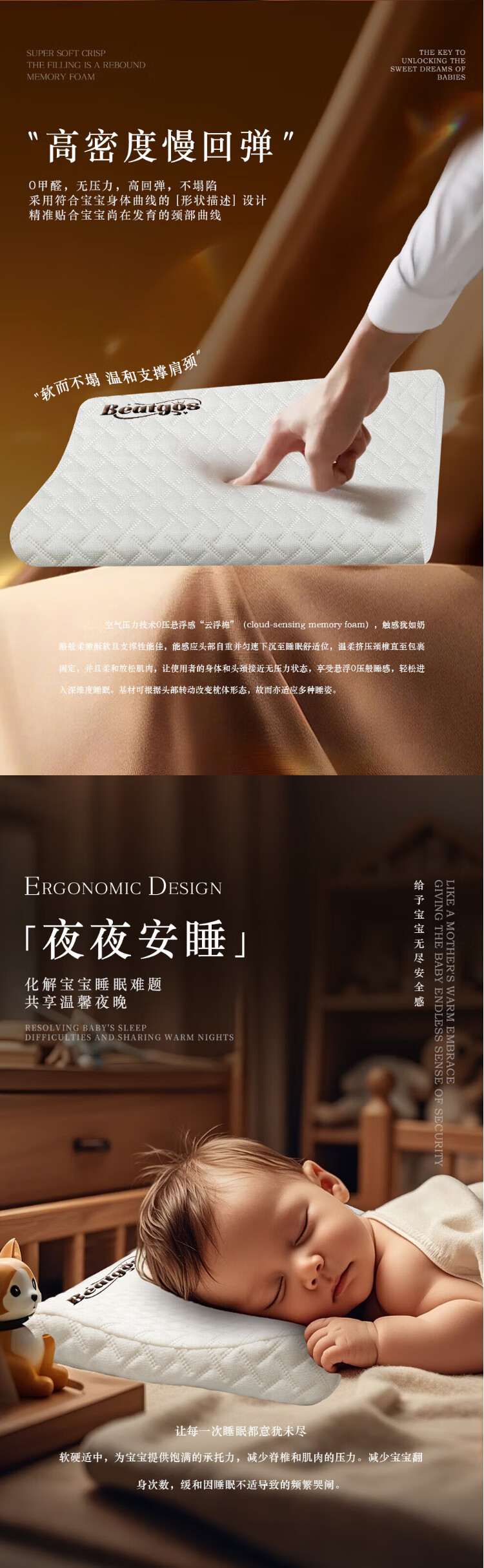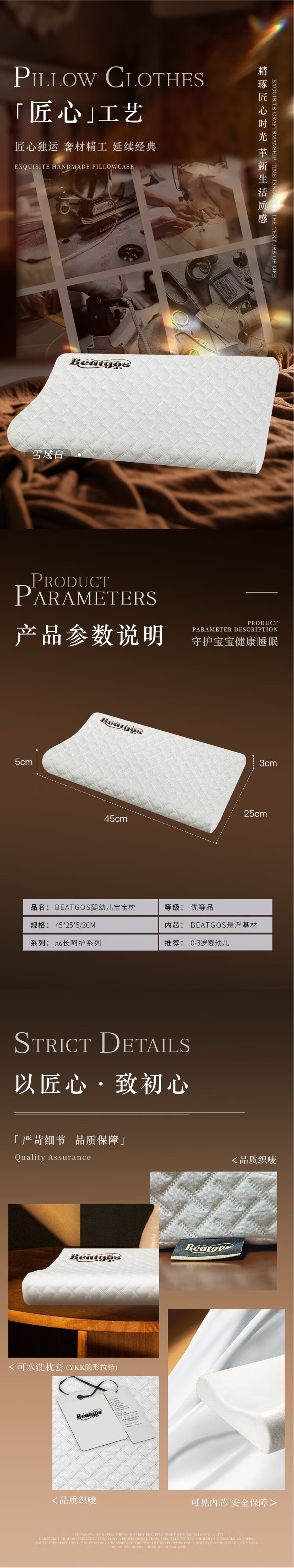 BEATGOS baby pillow, baby 0-6-12 months and above, newborn 1-3 years old, shaped deviation correction pillow, cervical vertebra neck protection pillow, Class A infant shaped spine protection baby pillow - Snowy White 45*25*3/5cm (0-3 years old)