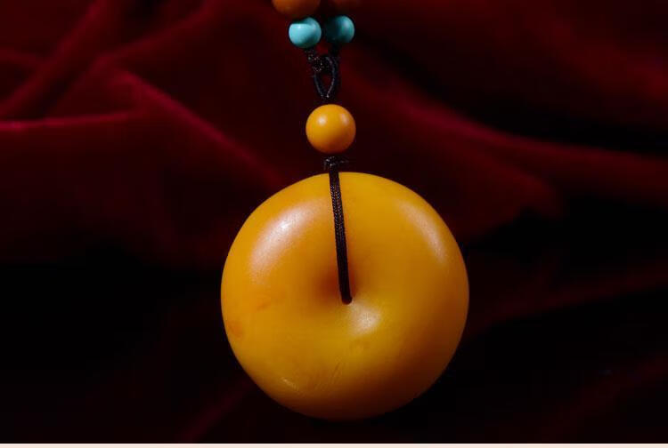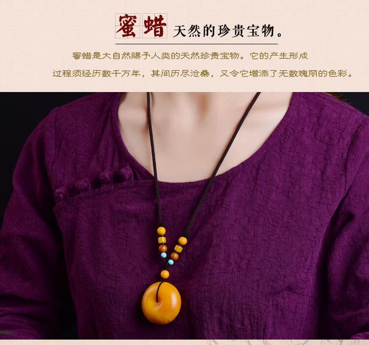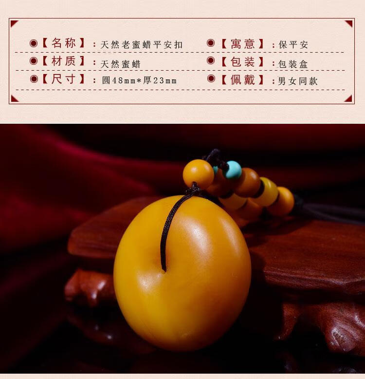 Confucian style natural old beeswax peace buckle pendant amber raw stone innocent brand pendant water drop shape sweater chain men and women old beeswax peace buckle 48*23mm with certificate
