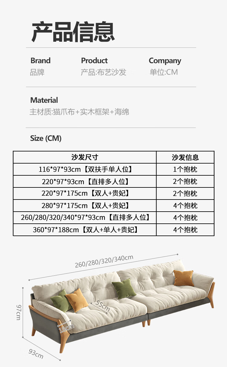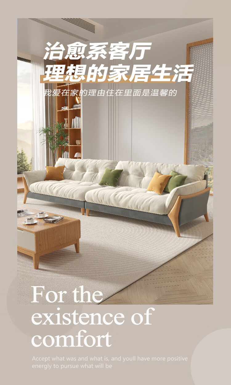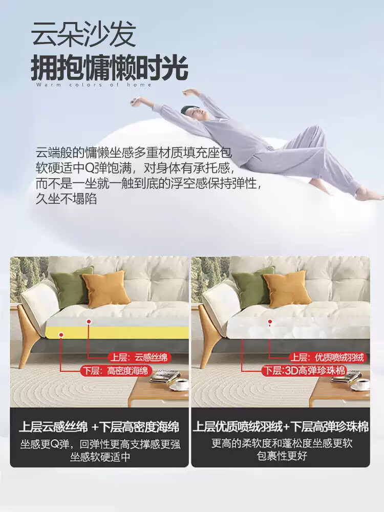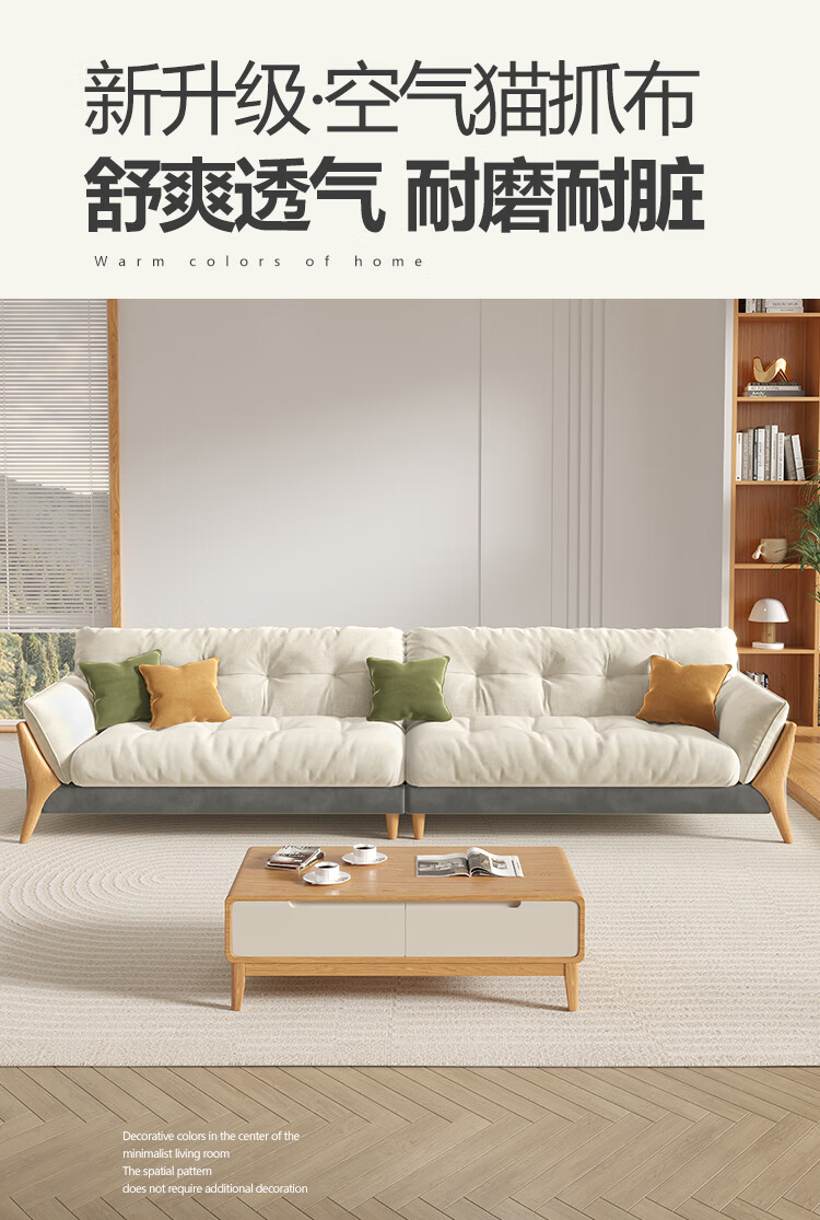 Nordic log cream style sofa living room new modern simple small apartment cat scratch cloth cloud sofa cat scratch cloth-sponge style 2.2 meters straight