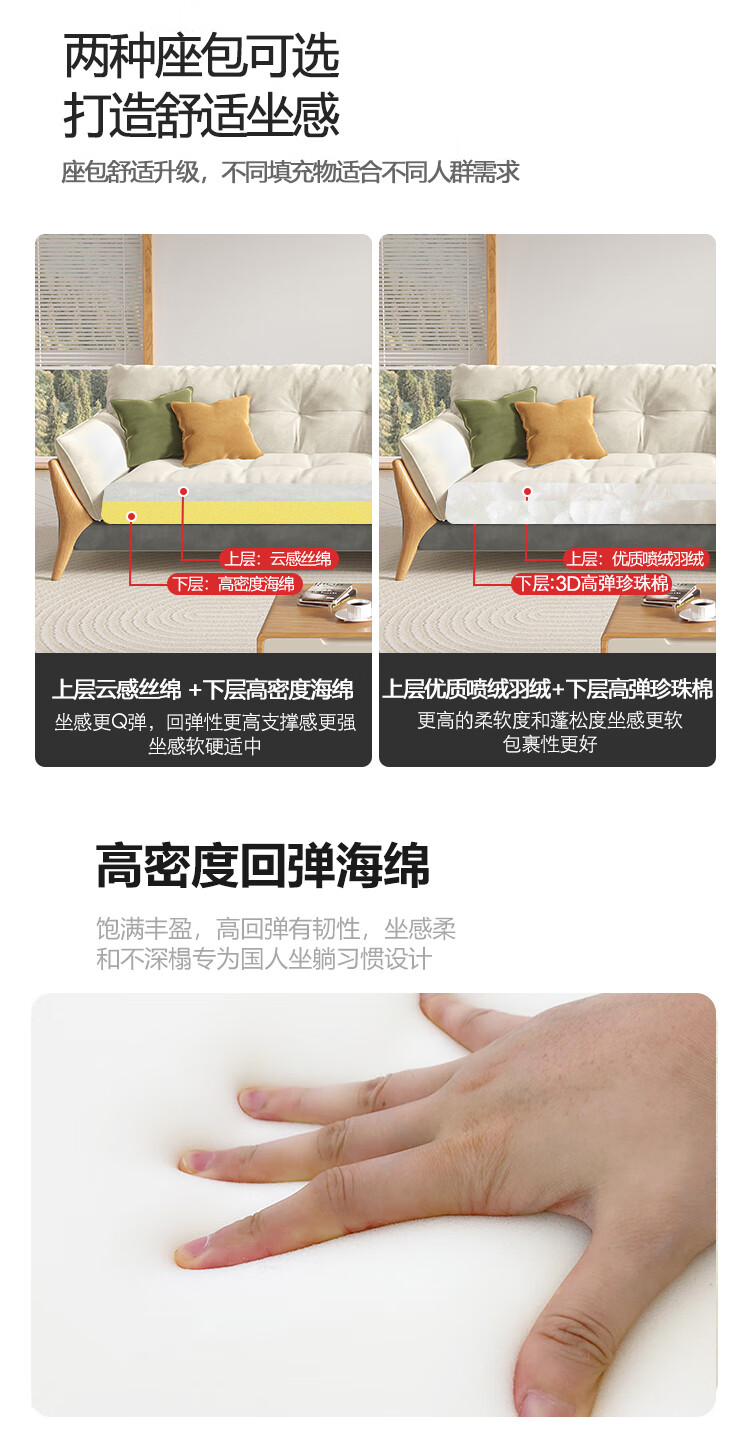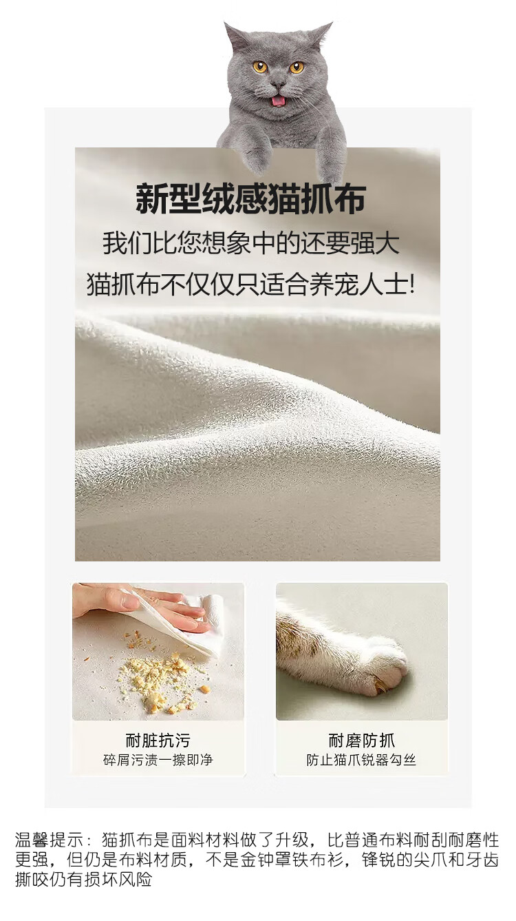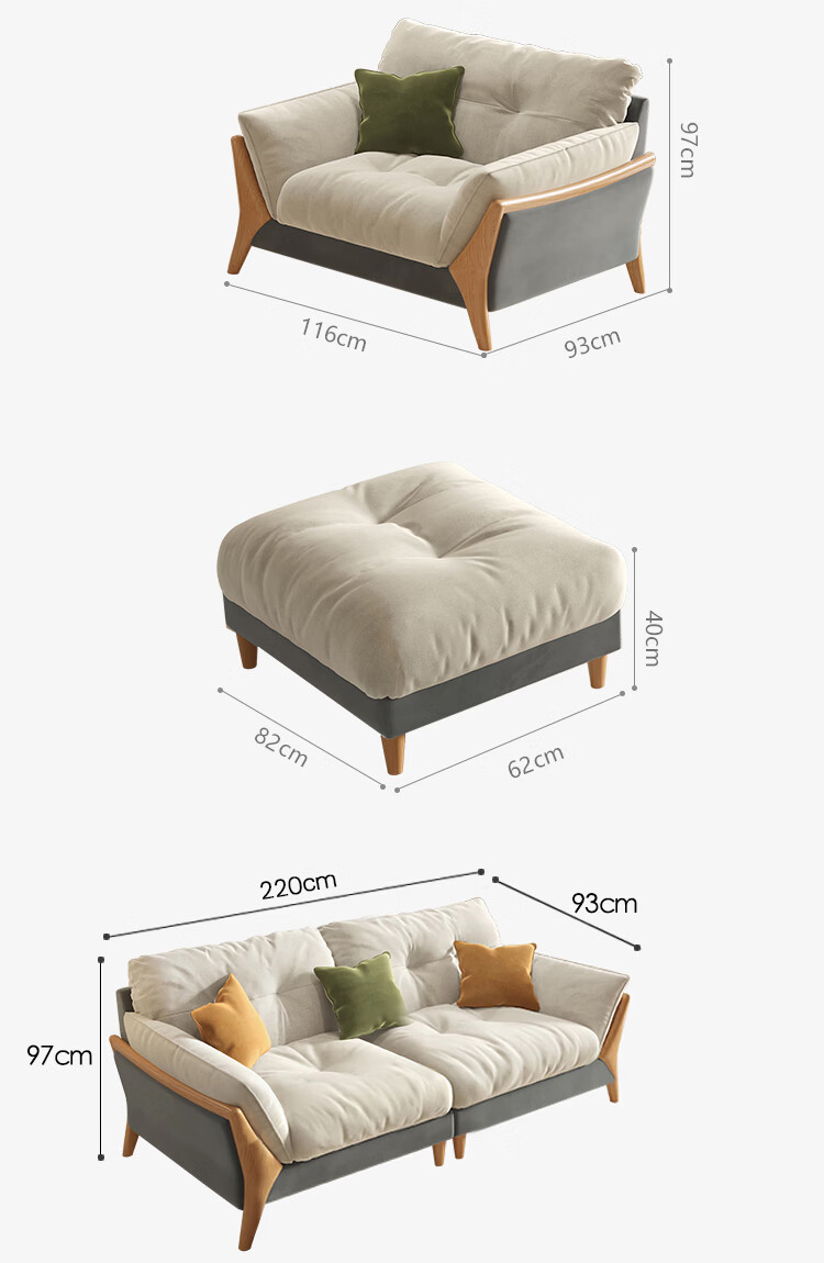 Nordic log cream style sofa living room new modern simple small apartment cat scratch cloth cloud sofa cat scratch cloth-sponge style 2.2 meters straight