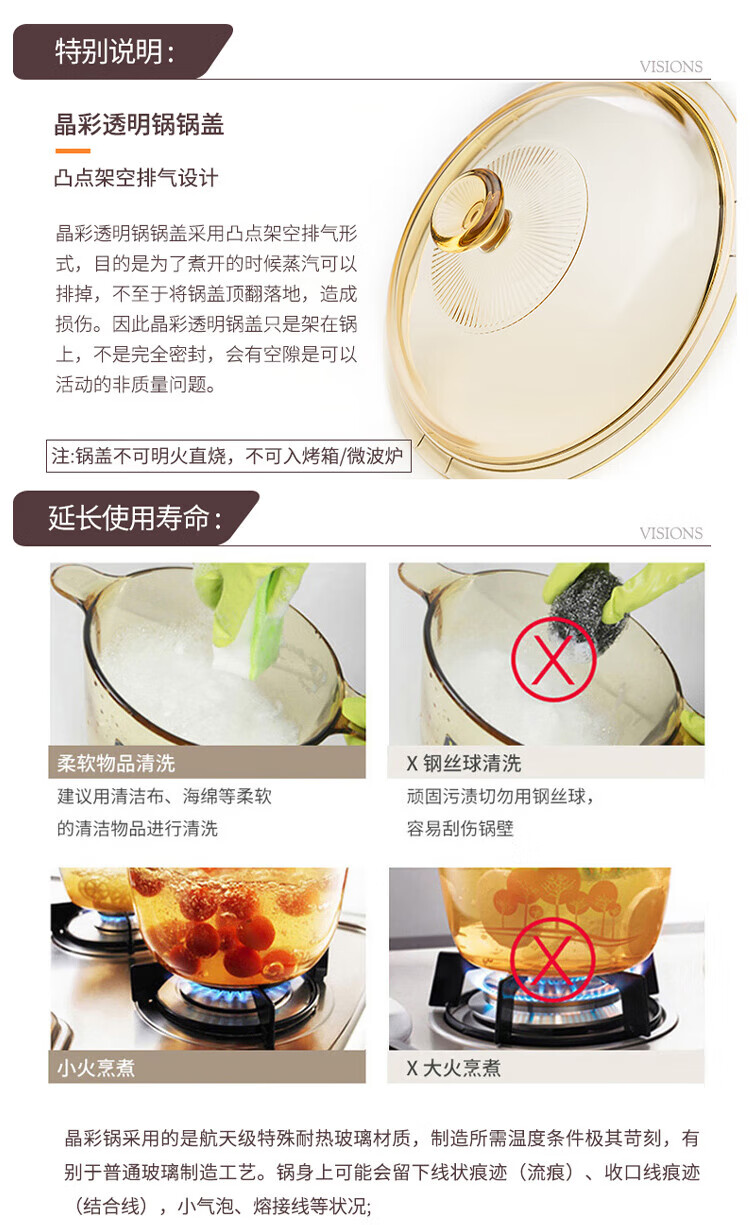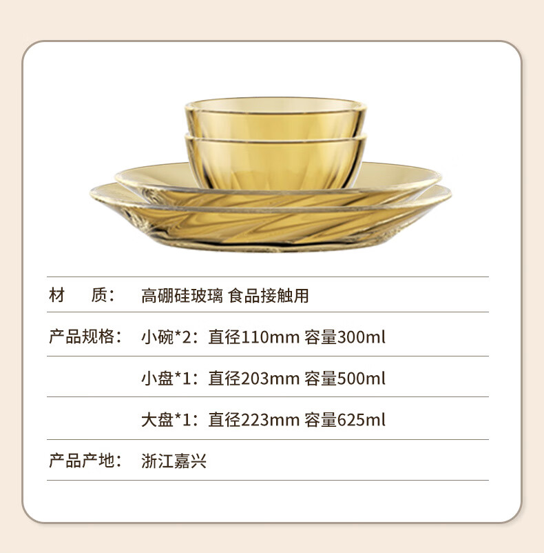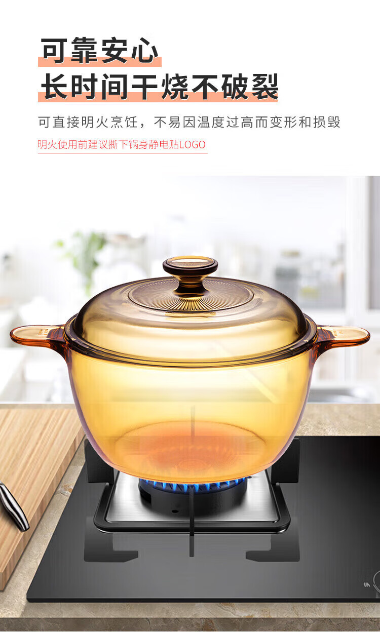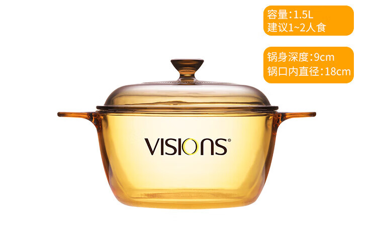 Corning 1.5L soup pot and 4-head tableware set combination, heat-resistant glass pot and glass dish set combination, VS15+4-head crystal tableware set