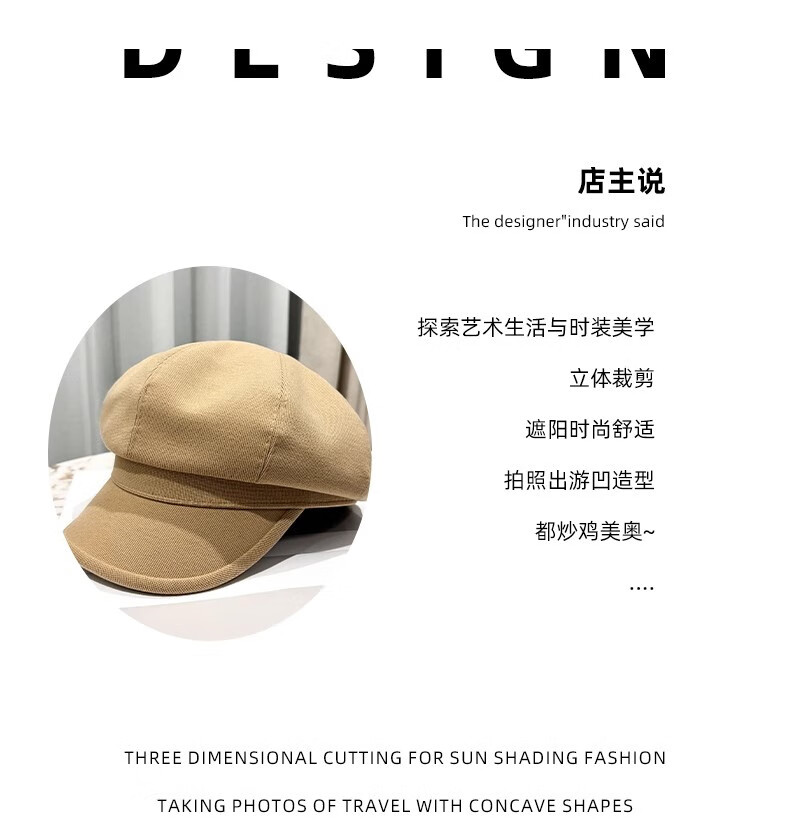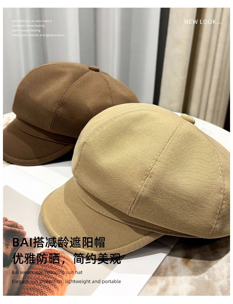 Scarecrow Beret Women's 2025 Spring and Summer New Casual Retro Painter Hat Fashion Versatile Octagonal Hat Trendy Peaked Hat Beige One Size