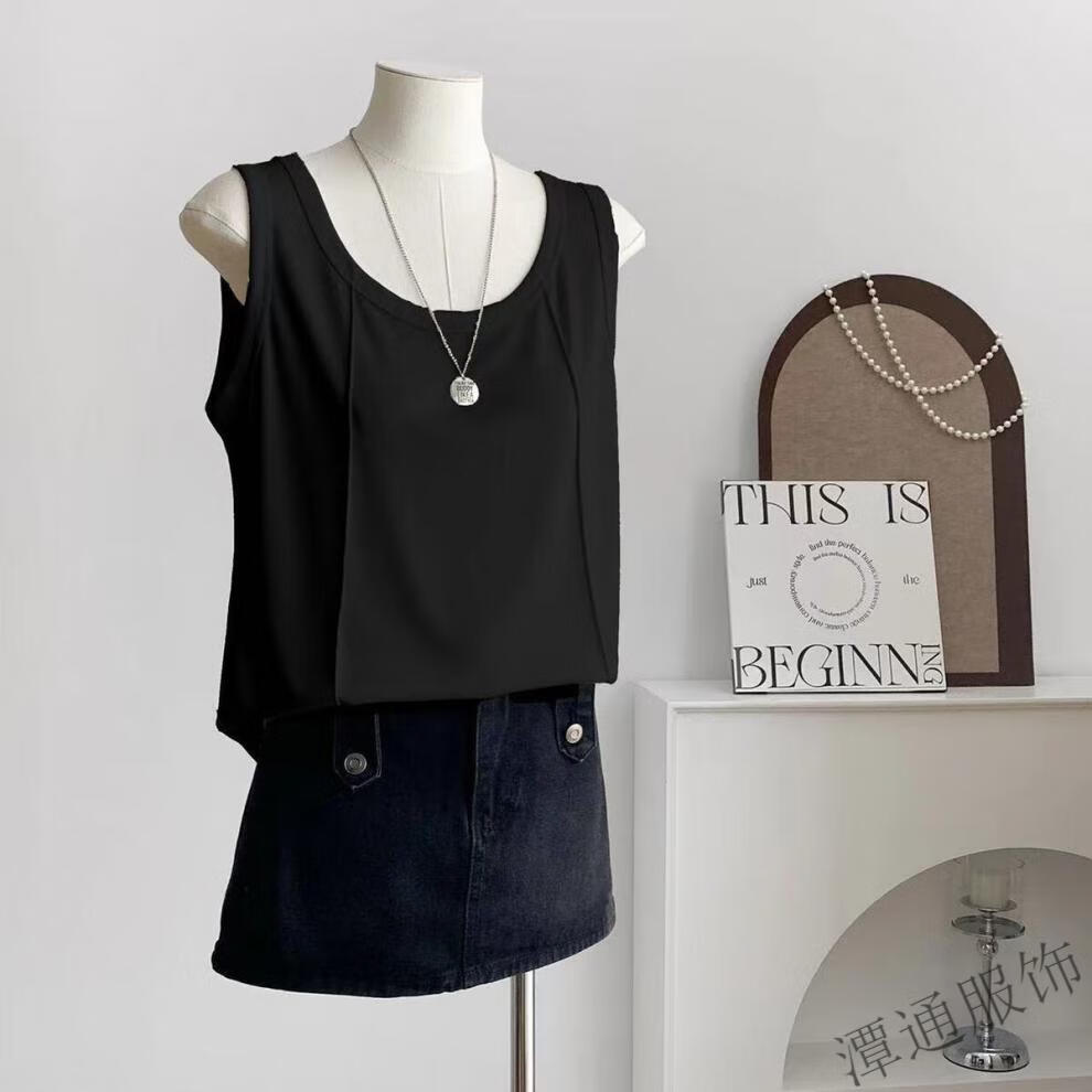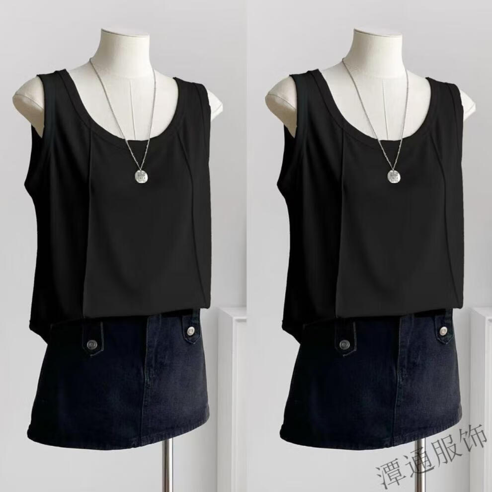 Opeodly camisole for women can be worn outside to cover the belly and is loose. Spring and summer new camisole for women. Large size is loose and covers the belly. Black. One size fits all.