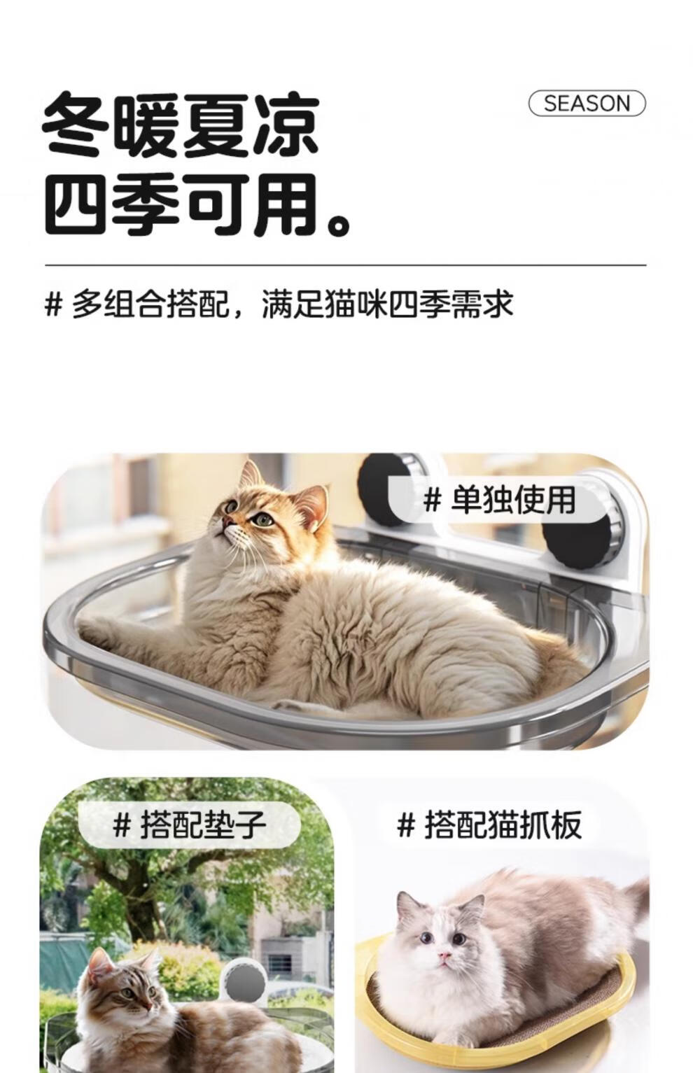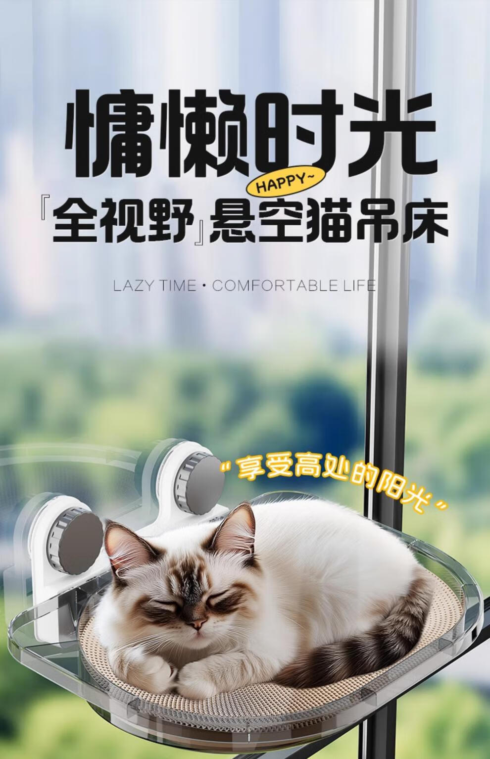 Cat Hammock Cat Climbing Frame Panoramic Window Cat Nest Pet Cat Shelf Suction Cup Hanging Bed Glass Suspension Sunbathing Cream Yellow - Luxury Style + Plush Mat + Cat Scratching Nest