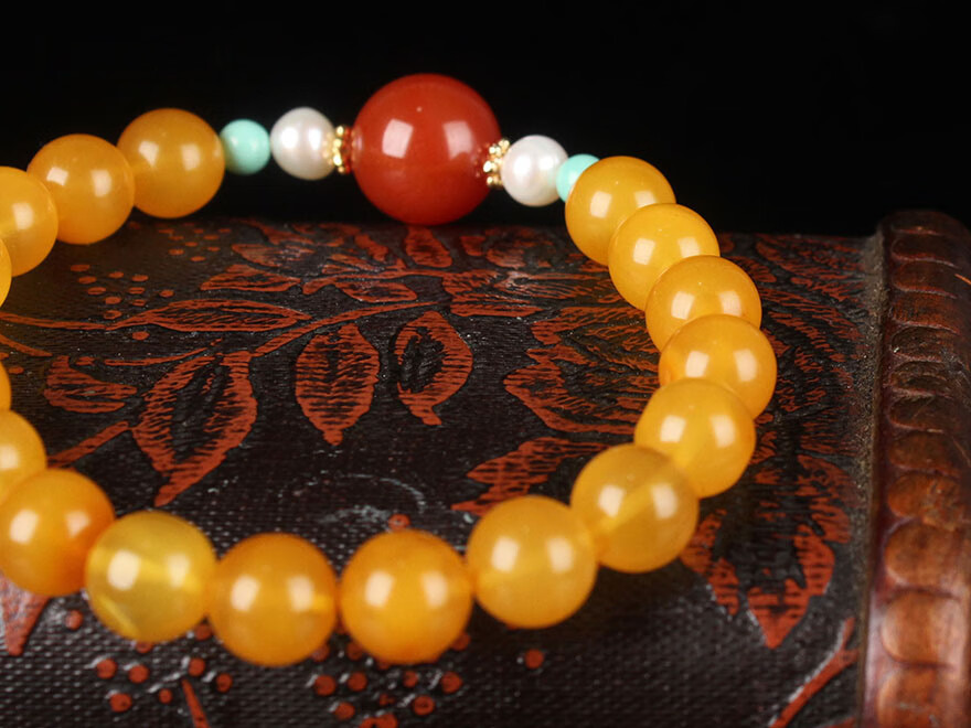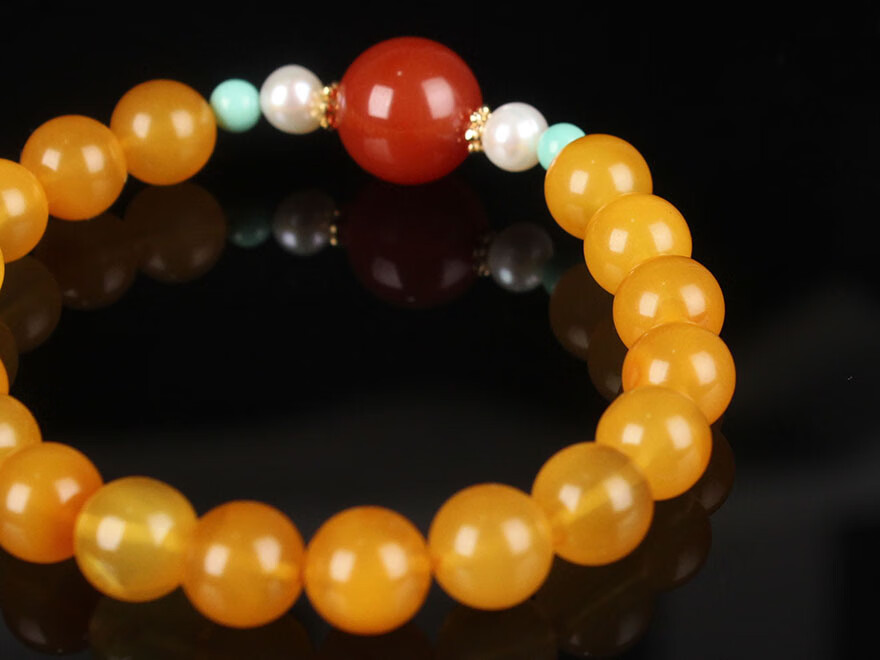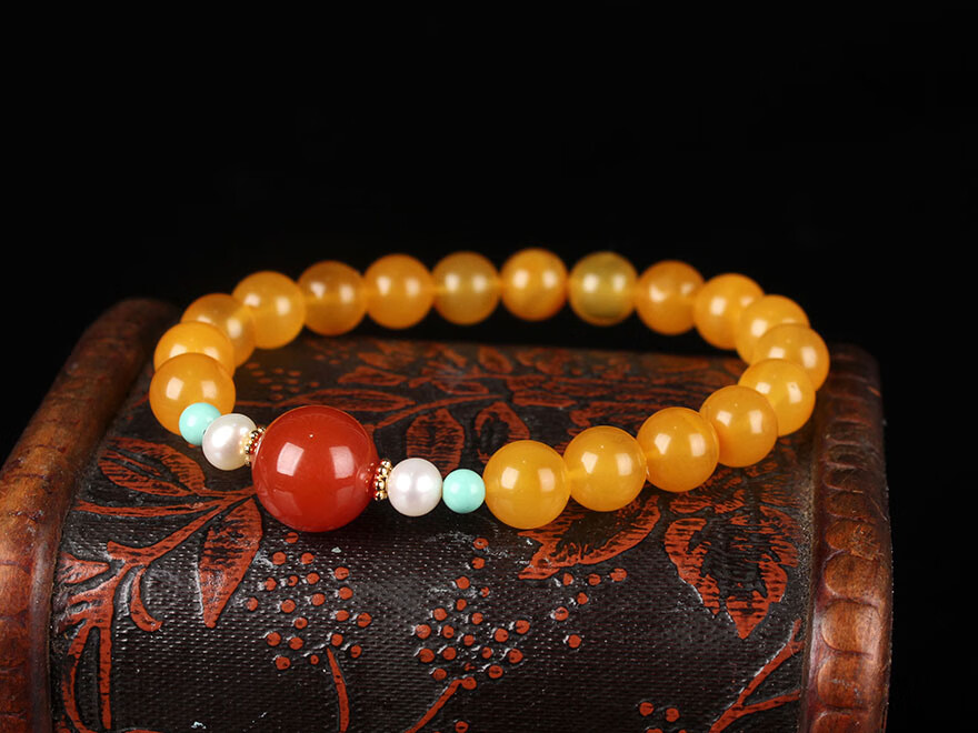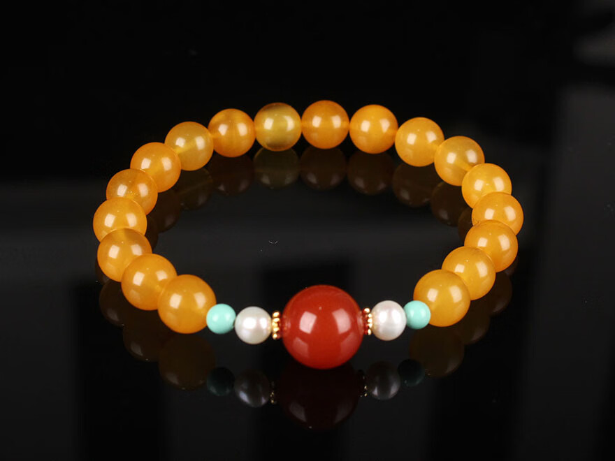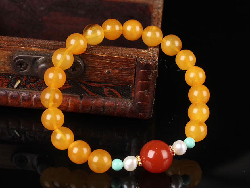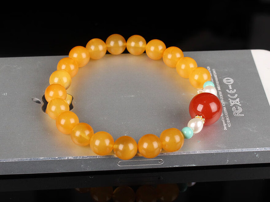 Zhenghe Jewelry beeswax chicken fat yellow round bead bracelet DIY diameter about 8mm weight 8.52 grams