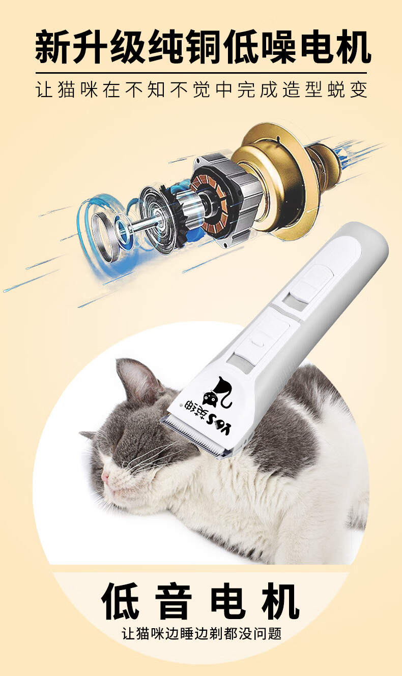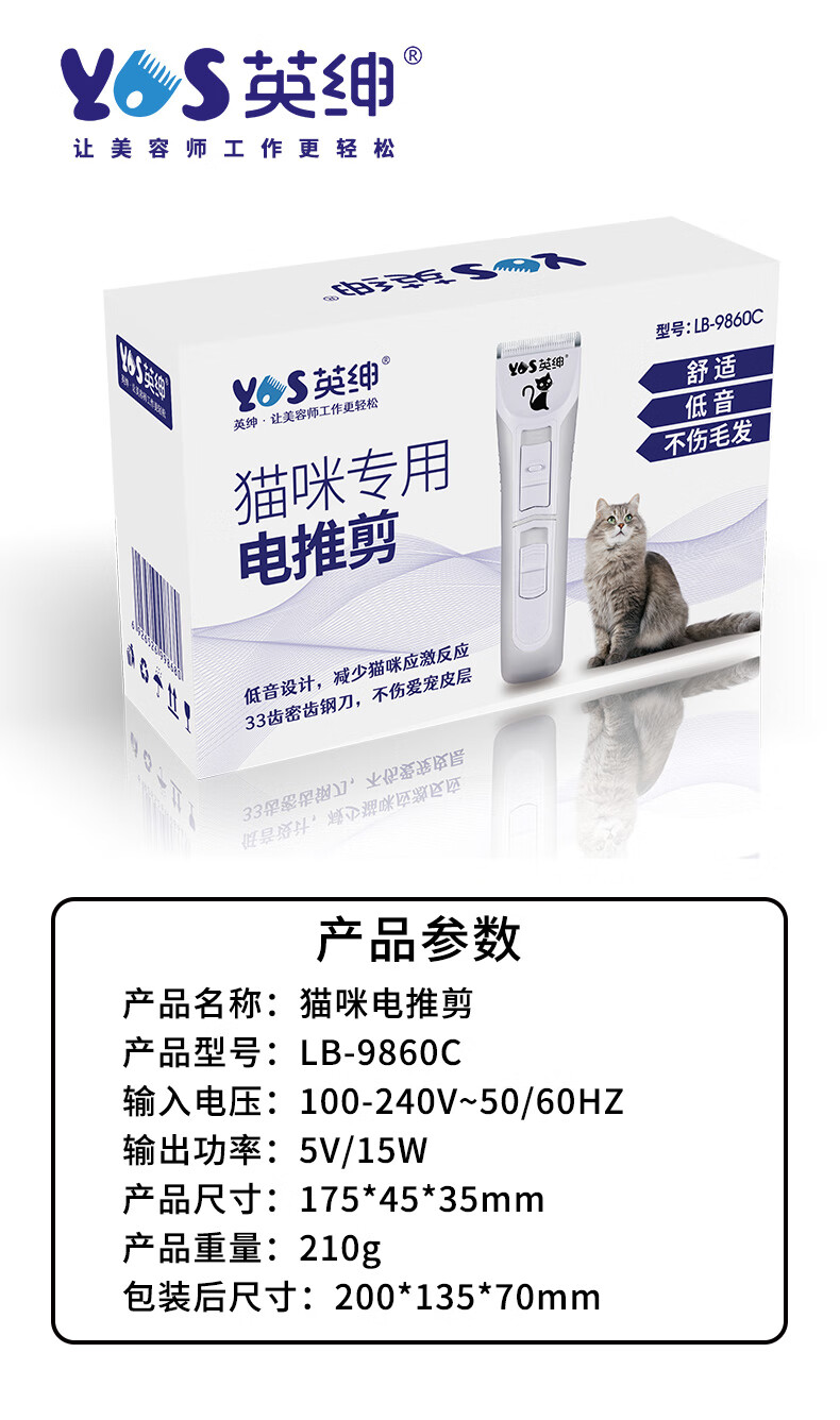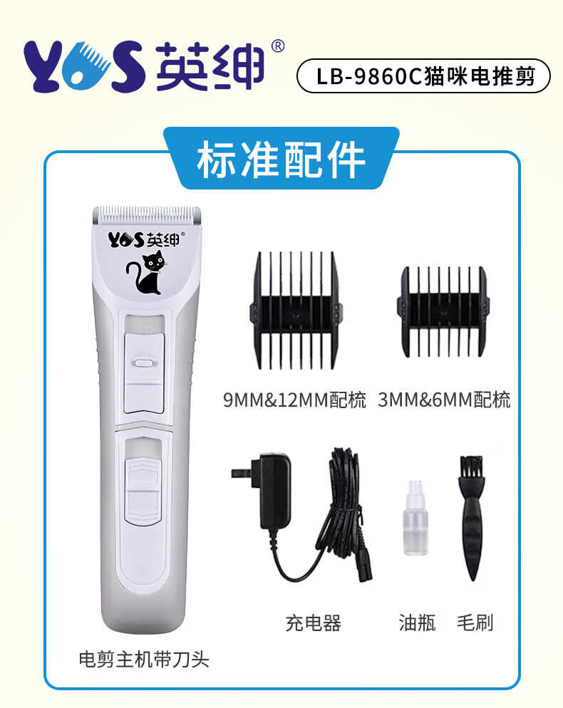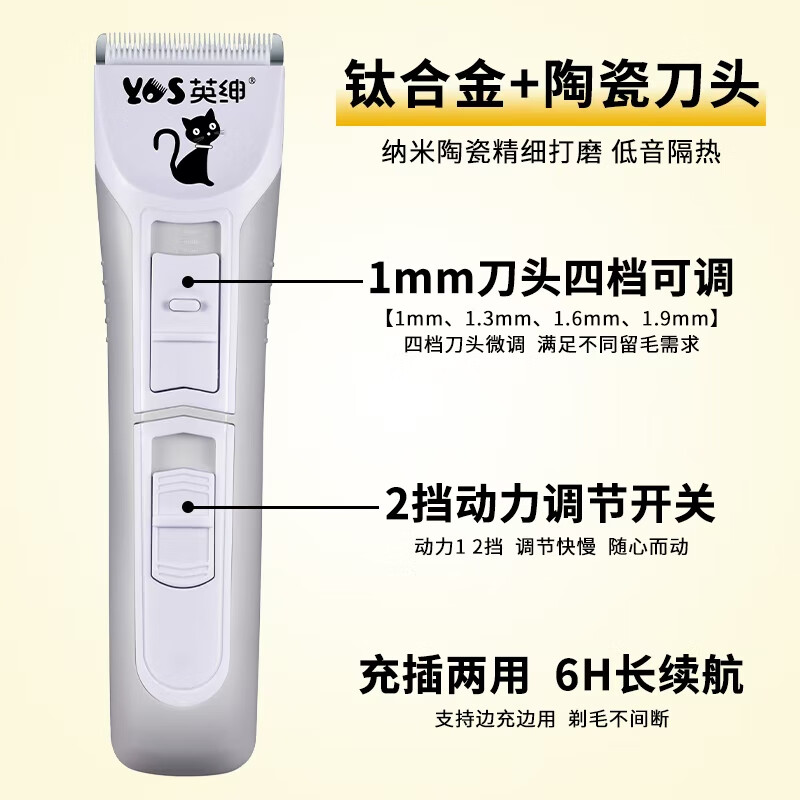 Yingshen pet electric clipper cat foot shaver electric clipper Ragdoll cat gold gradient long-hair cat shaver 9860C host + 1-2mm blade (33 teeth)