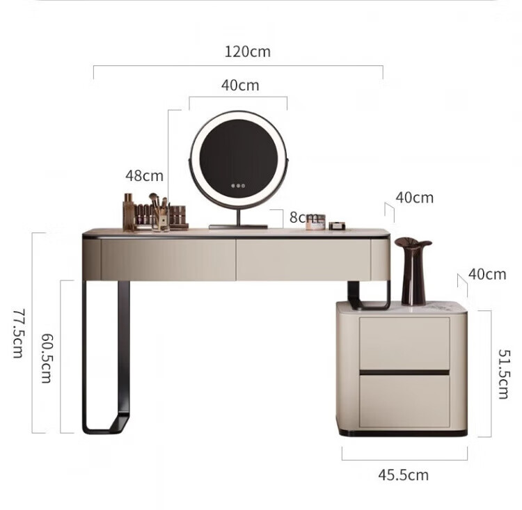 All solid wood slate dressing table bedroom simple modern small apartment customizable stainless steel dressing table dressing table 80cm single dressing table