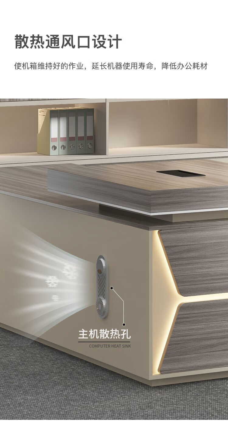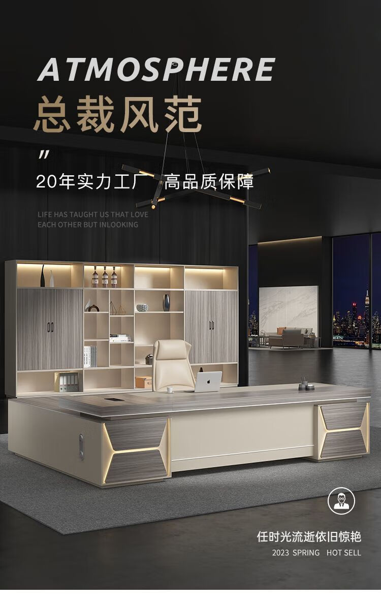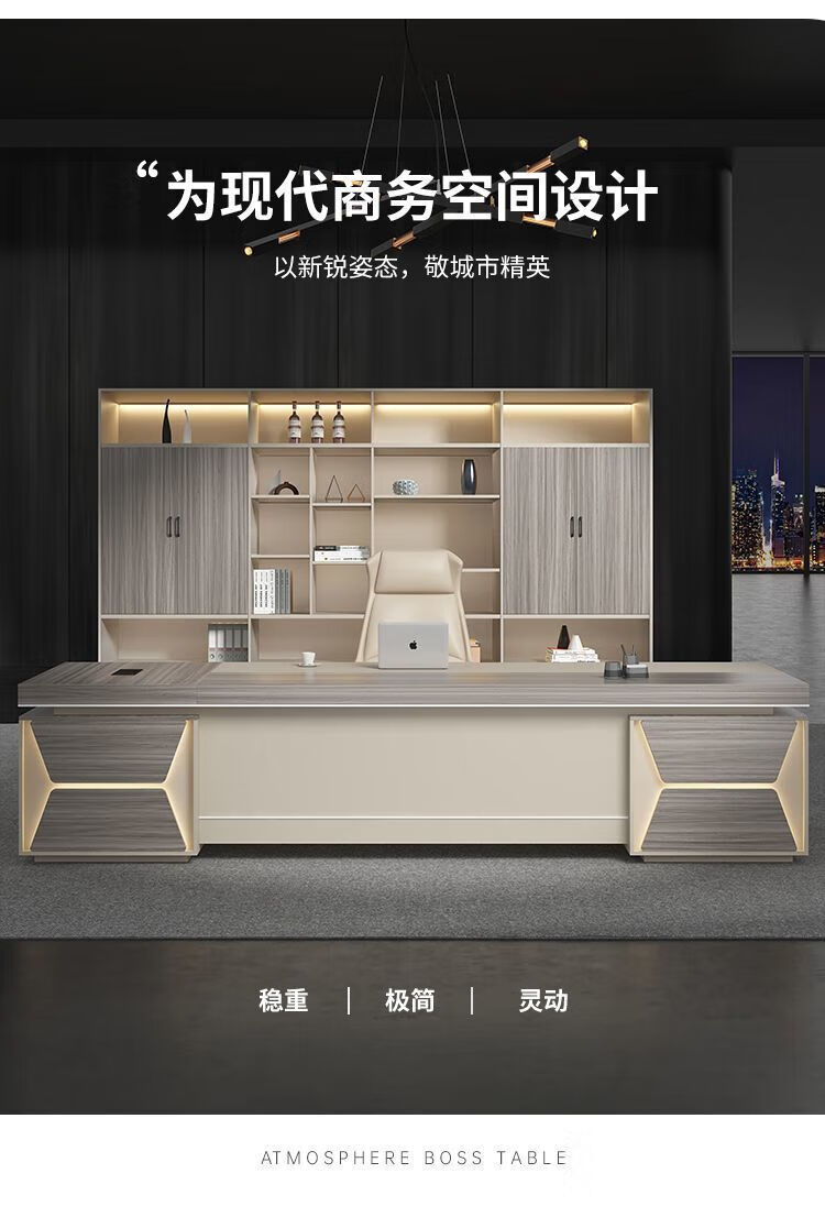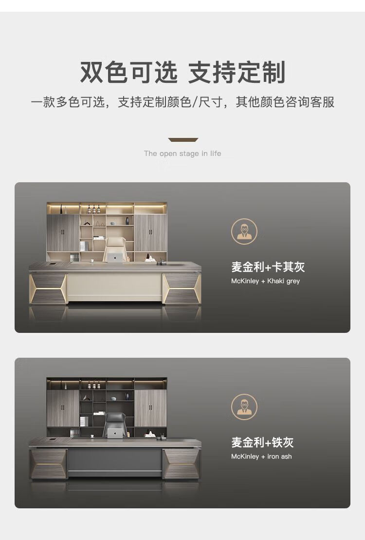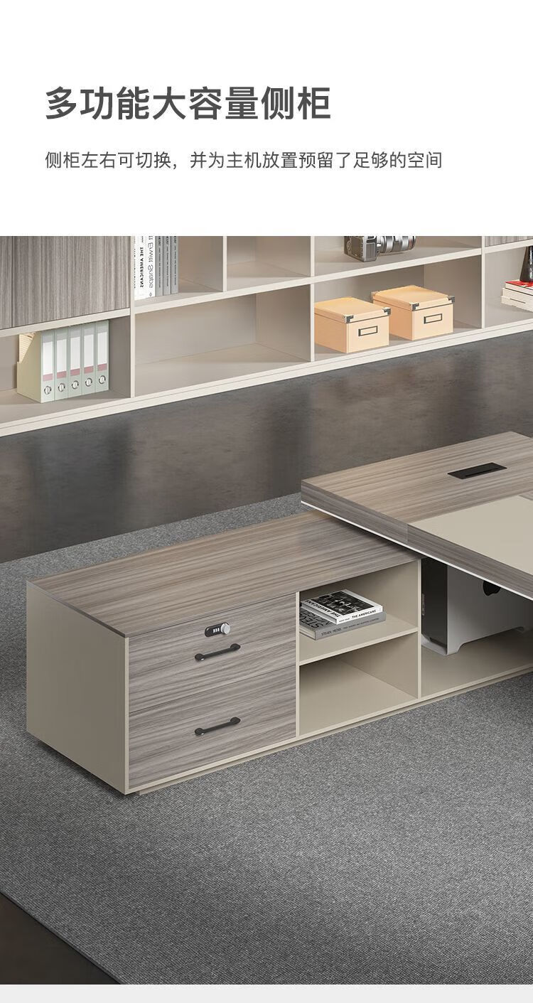 Boss desk office desk and chair combination simple modern light luxury double cabinet executive desk manager desk executive desk furniture McKinley + Khaki installation consultation customer service 1.6 meters + classic single cabinet Qiancheng package delivery