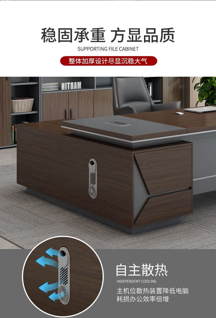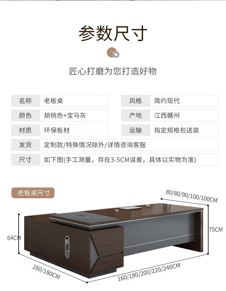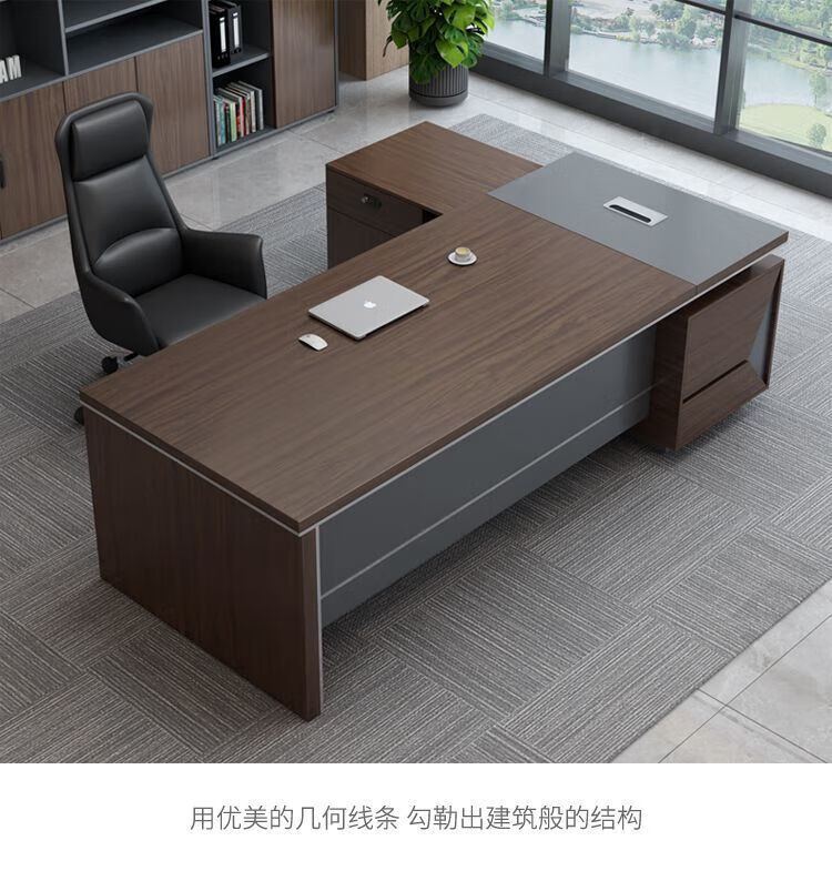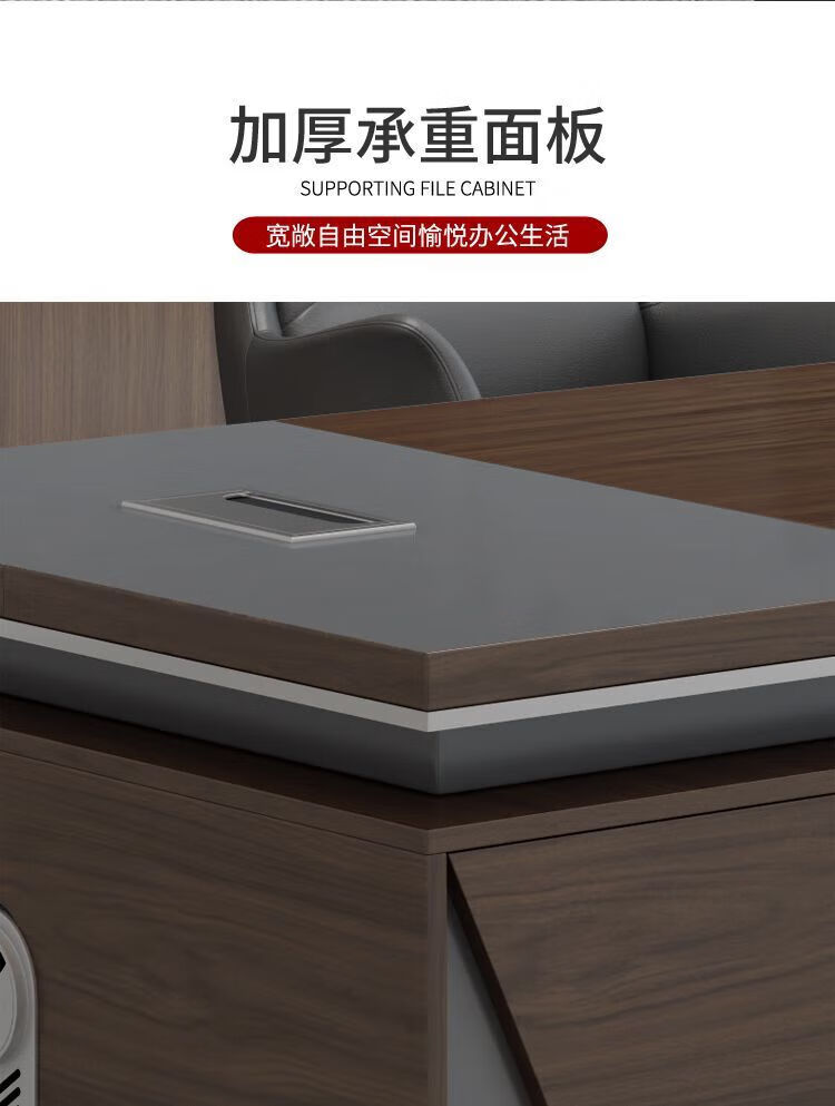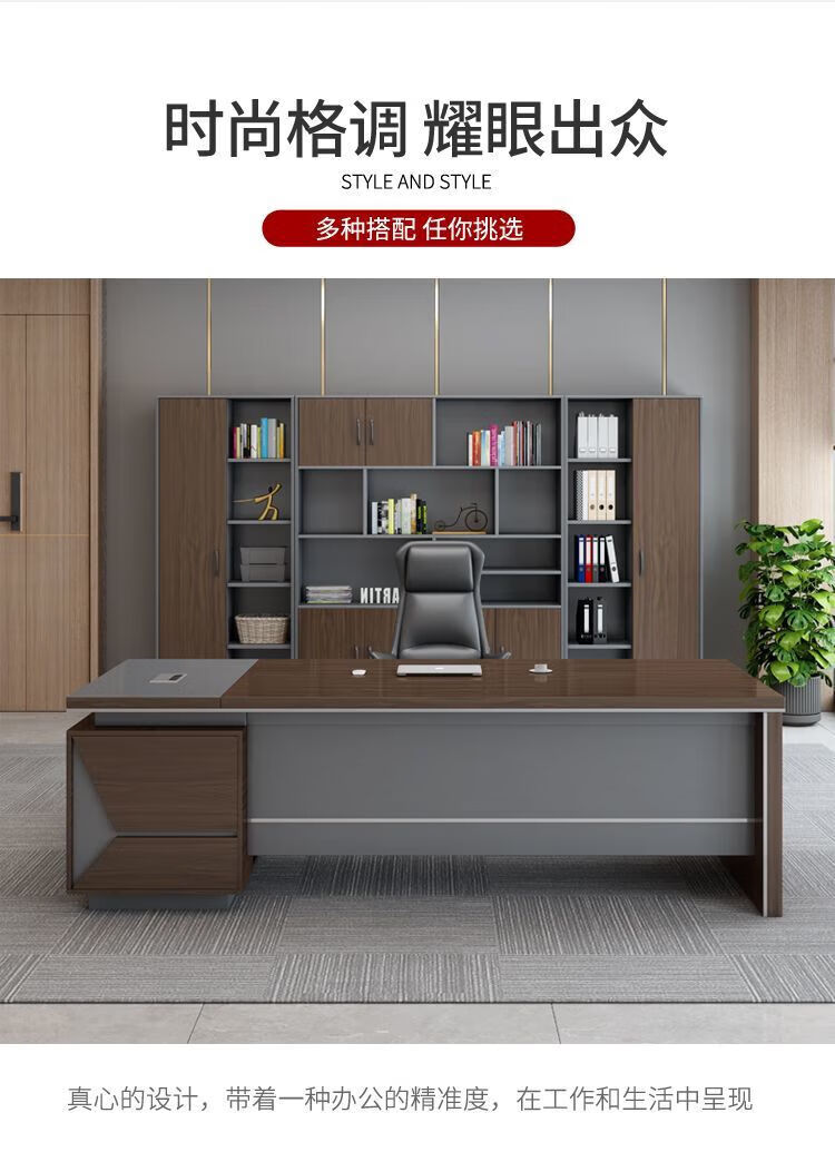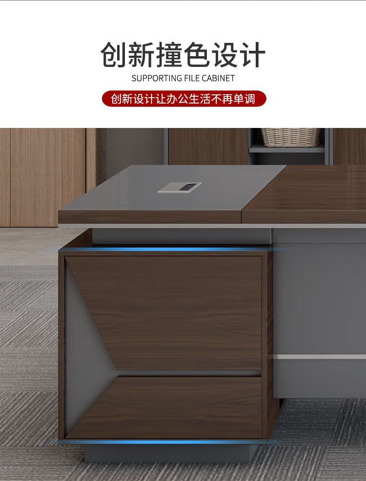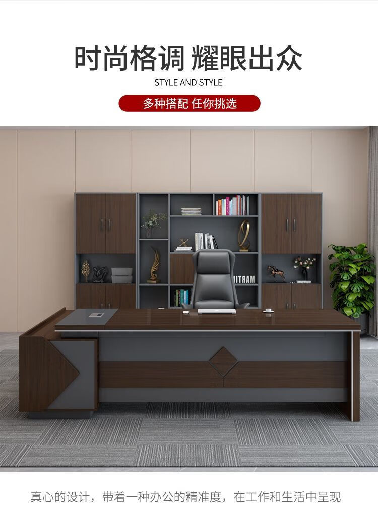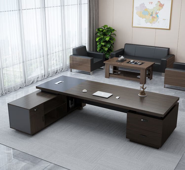 Desk Boss Desk President Desk Manager Executive Desk Chairman Single Executive Desk Double Cabinet Office Desk and Chair Combination 6020# (Walnut Color) 1.6m Boss Desk + Side Cabinet