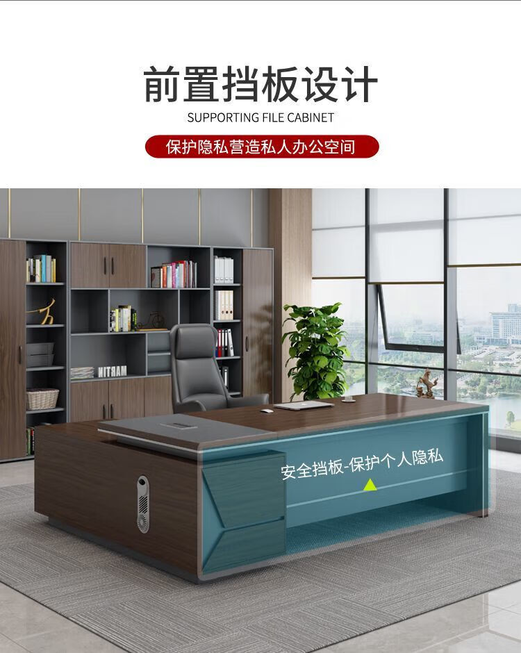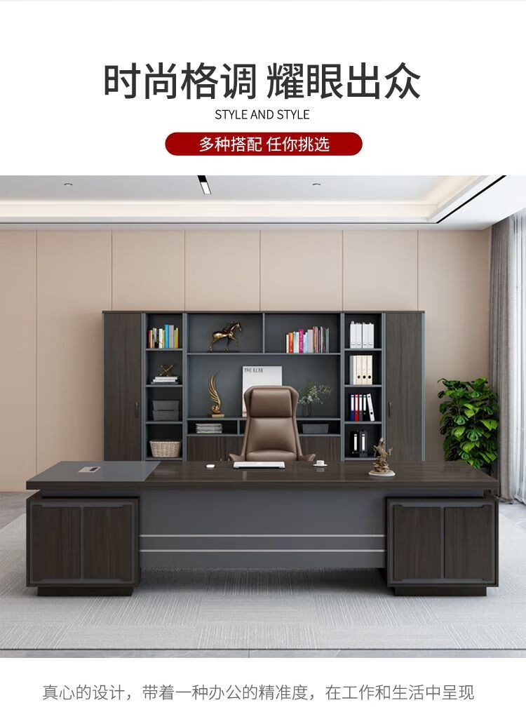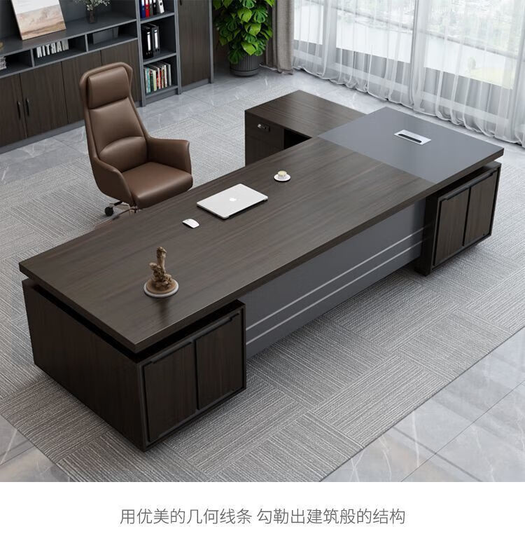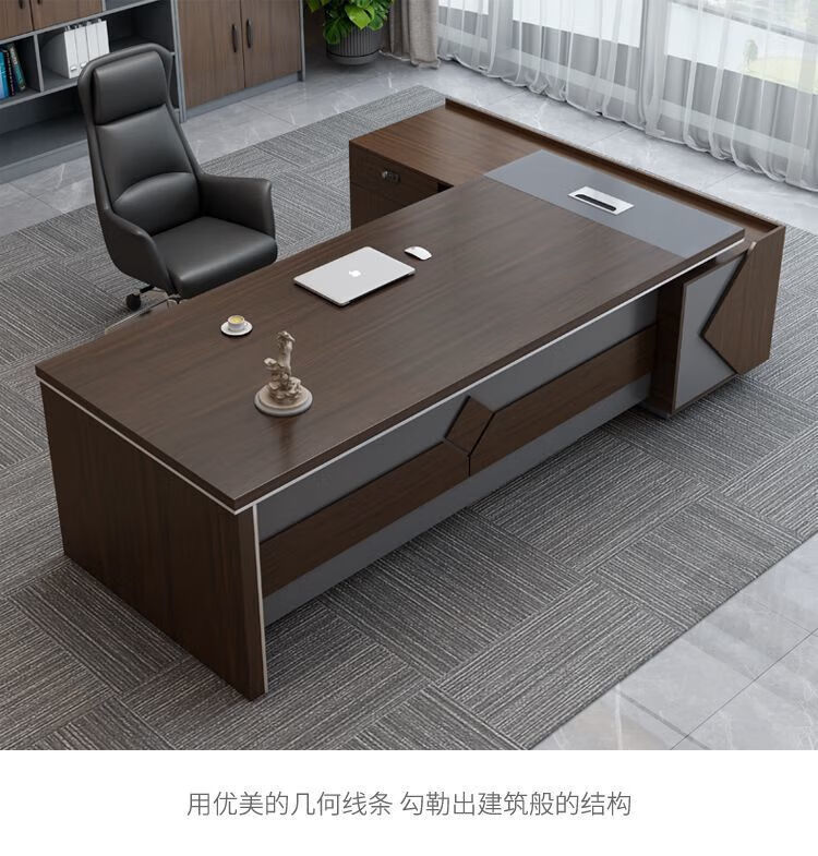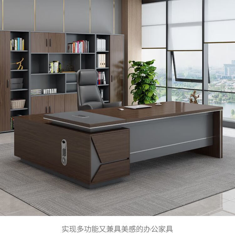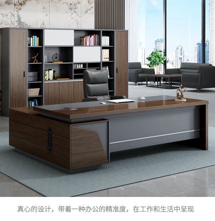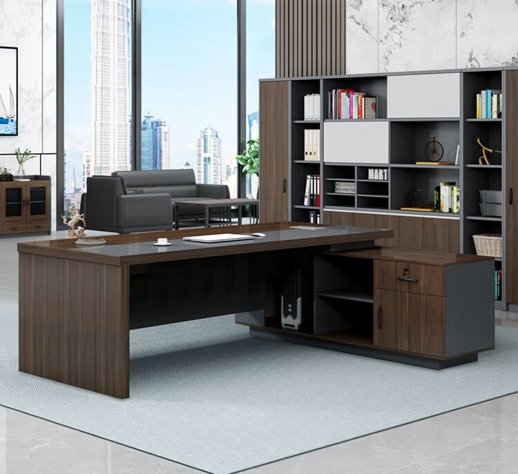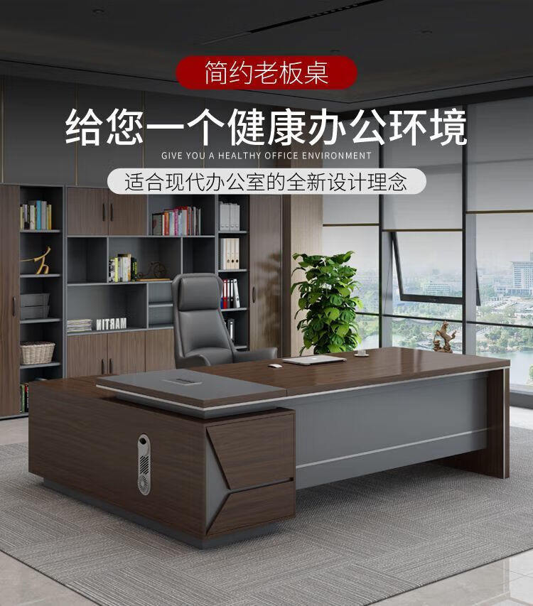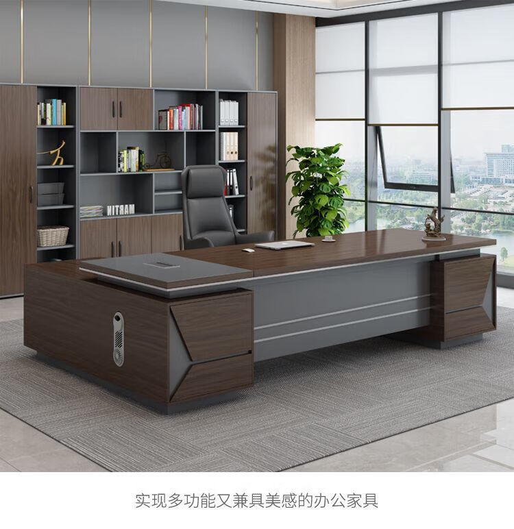 Desk Boss Desk President Desk Manager Executive Desk Chairman Single Executive Desk Double Cabinet Office Desk and Chair Combination 6020# (Walnut Color) 1.6m Boss Desk + Side Cabinet