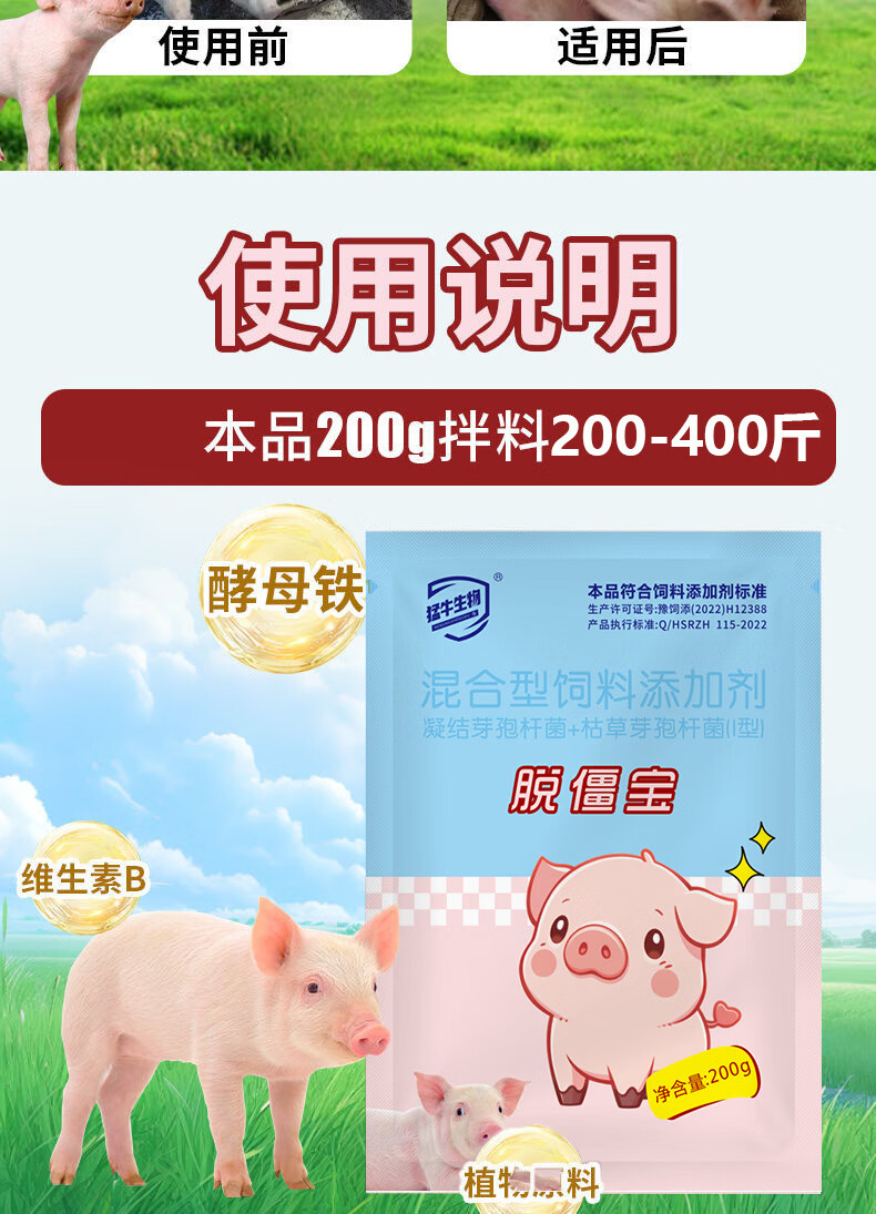 OIMG Anti-rigid pig premix is used to remove stiffness, promote growth and condition the intestinal tract of weaned pigs, nursery pigs, stiff pigs, 40 bags of anti-rigid treasure, free 12 bags, and 52 bags of real hair.