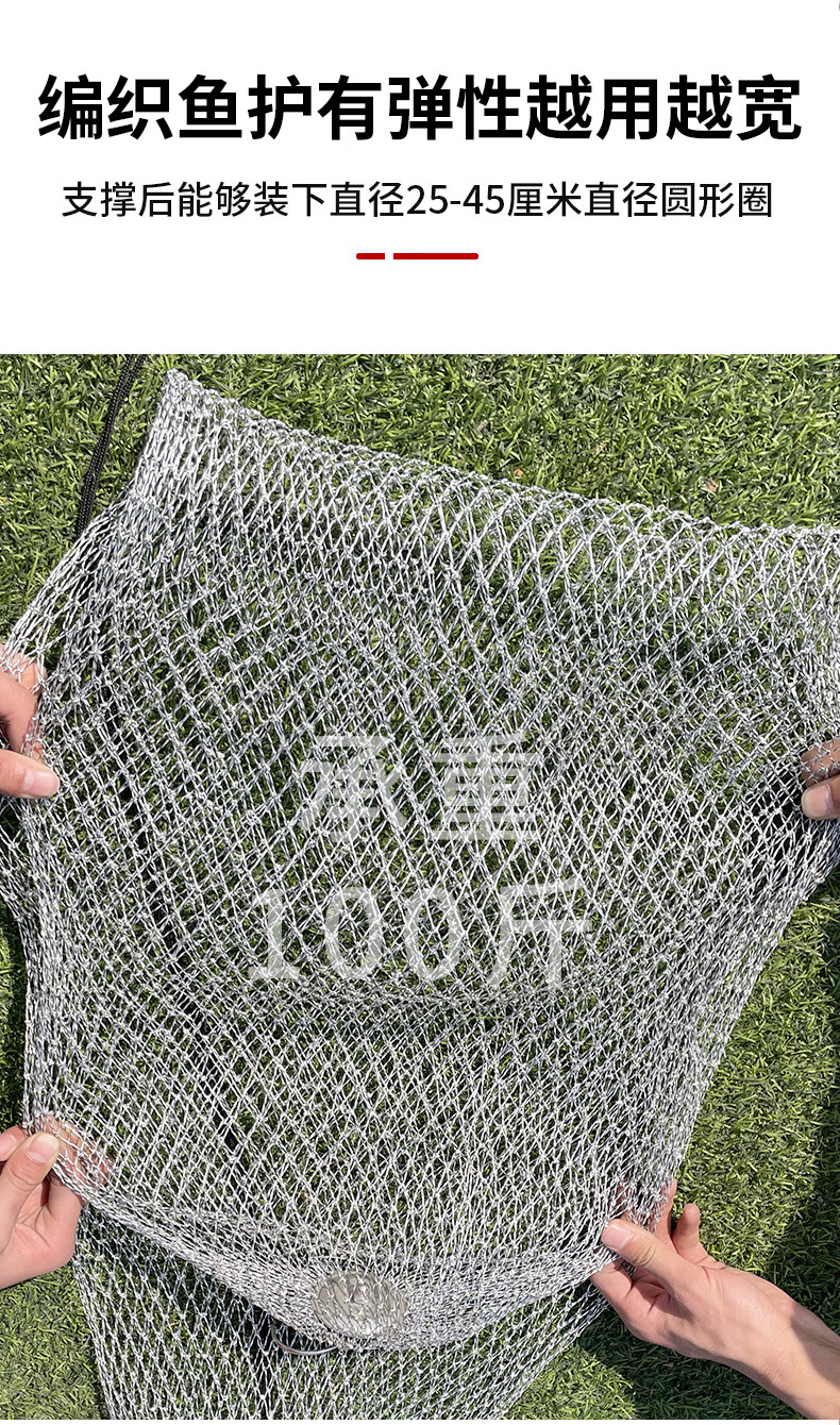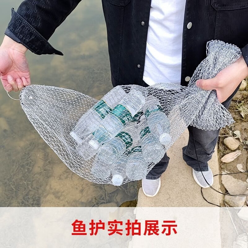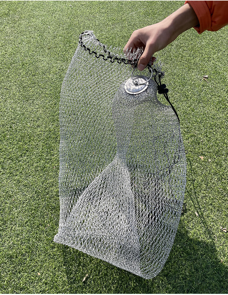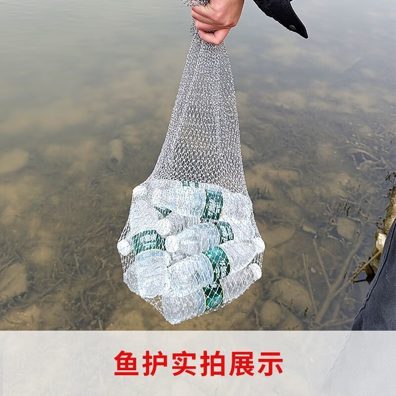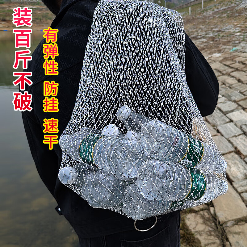 Bai Chao Thick Line Net Bag High-horsepower Fish Net Bag Folding Fishing Net Thickened Fish Protection Basket Drawstring Net Bag Simple Net Bag 100cm 1m Net Length with Rope Gray Hand-woven Net Bag Special for Large and Small Fish 20