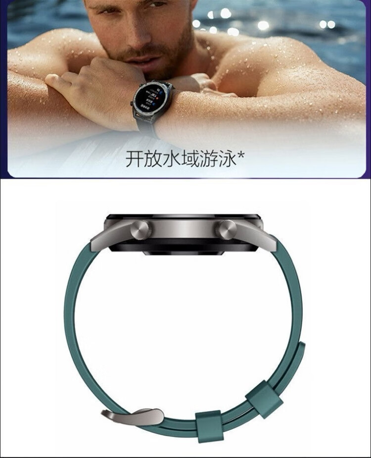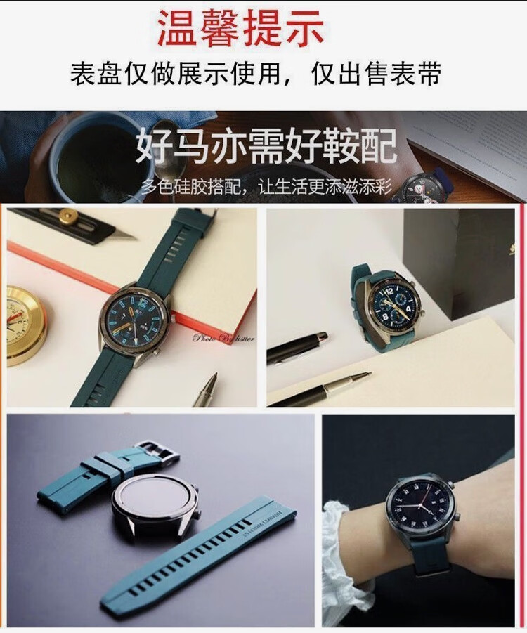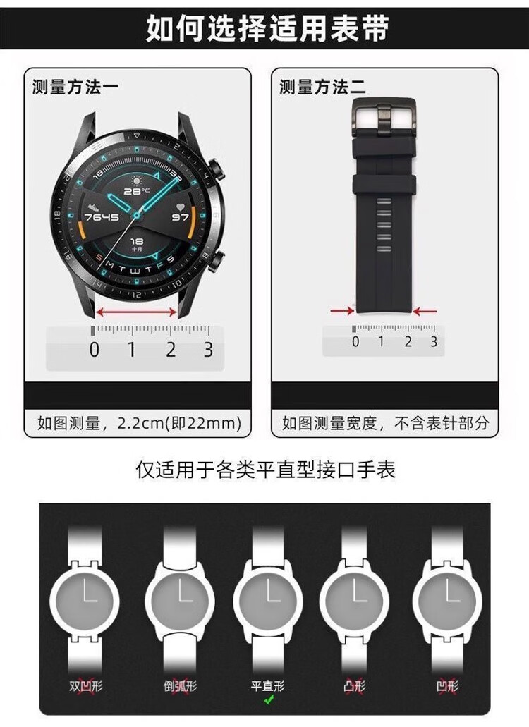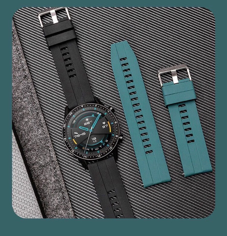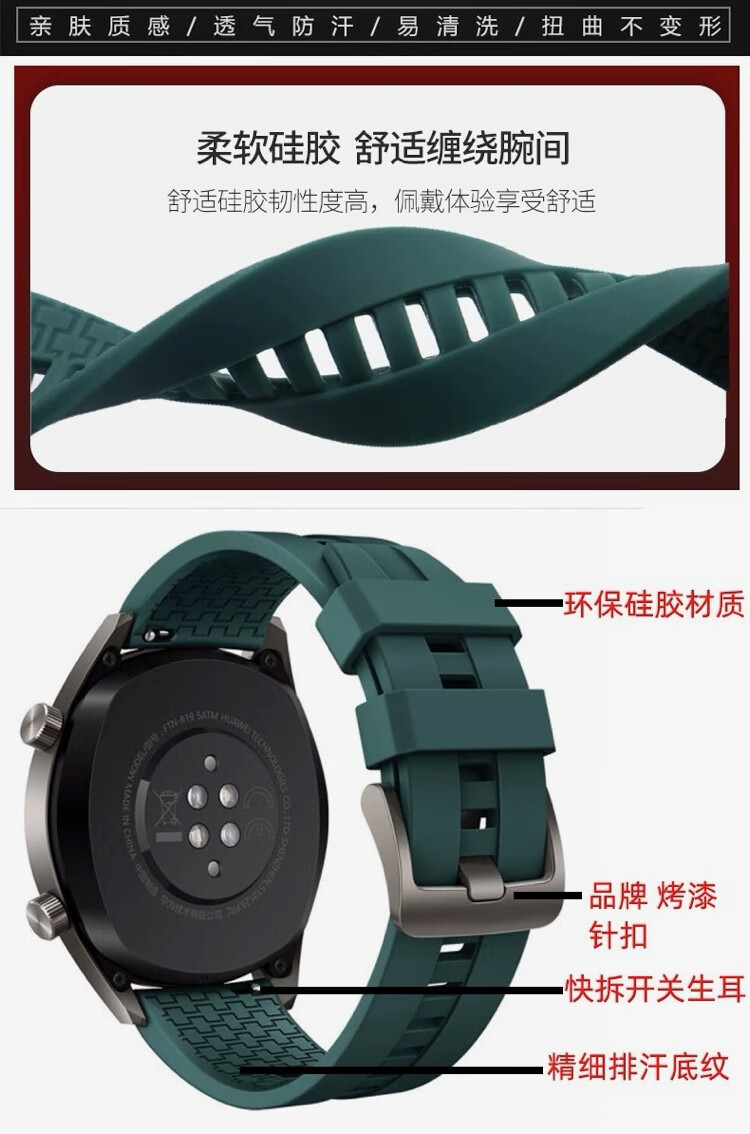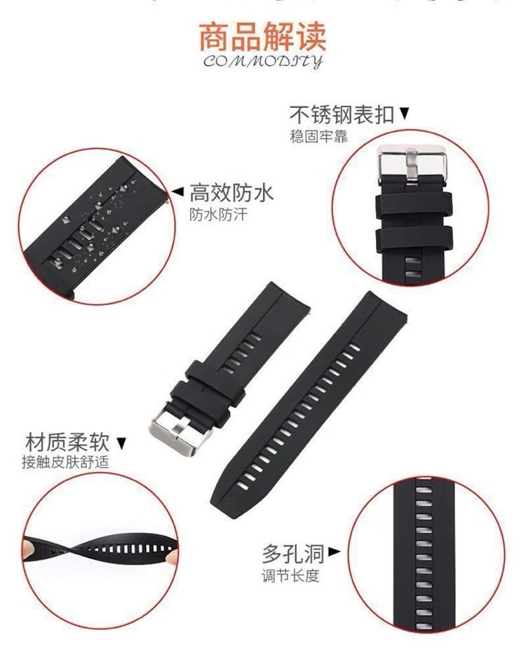 Suitable for Huawei watch strap gt4/GT3/watch4pro/GT5 silicone fluorine rubber summer breathable waterproof watch strap black/black pin buckle gt2/GT3/gt4/46 dial 22mm
