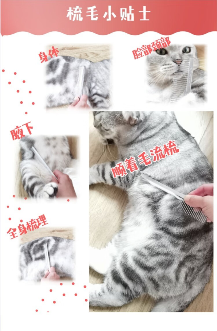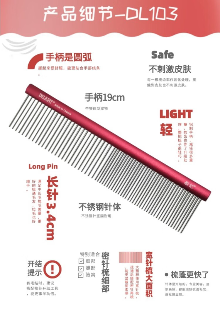 Chuanji comb pet grooming comb grade dog long hair cat comb cat comb long hair/knot opening comb silver 103/knot opening liquid 1