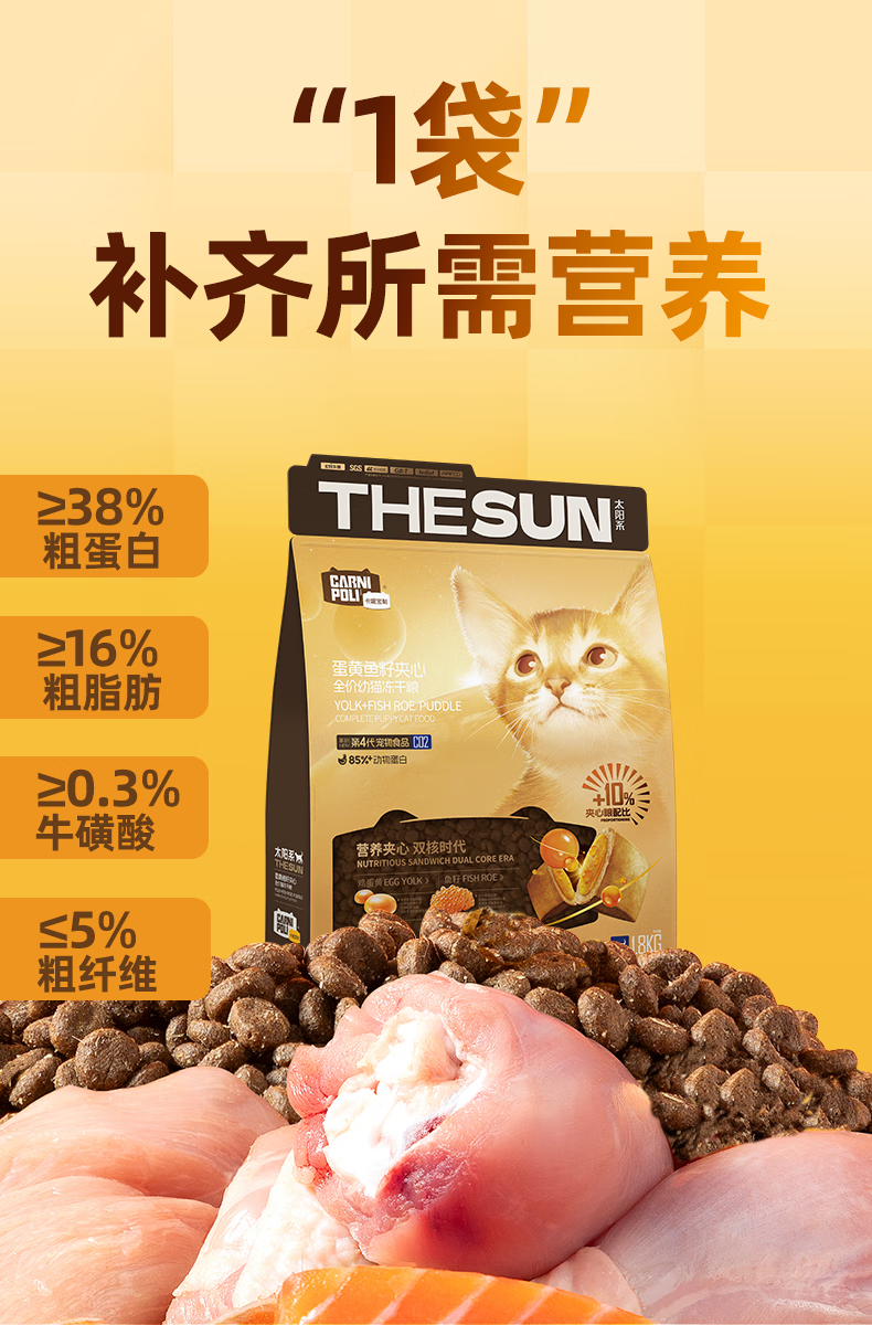 Caniboli fresh chicken high protein nutrition egg yolk fish roe full price freeze-dried young adult cat meat growth food general cat food for adult cats 1.8kg free trial pack 450g