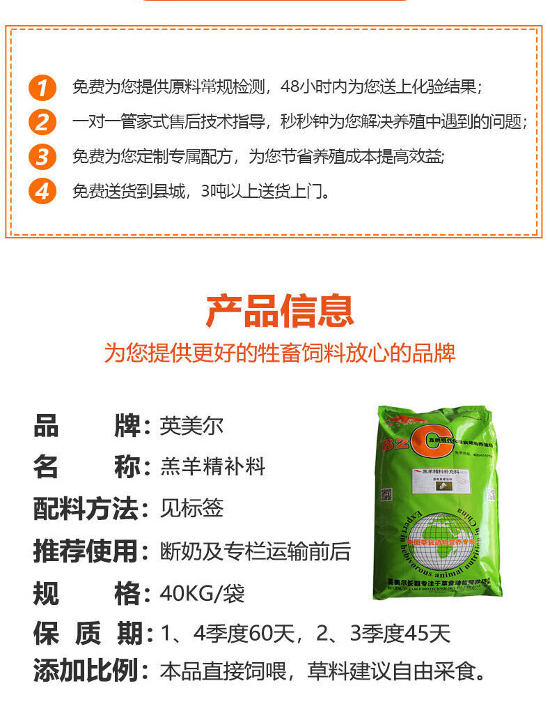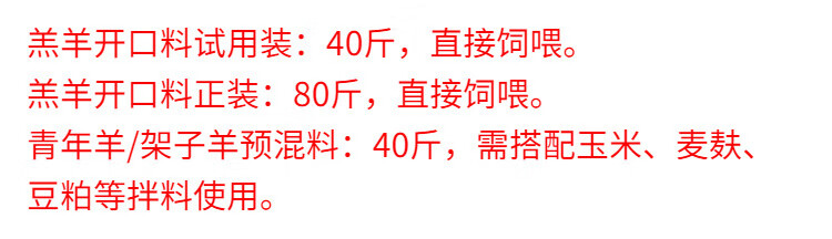 OIMG Ingmeir Lamb Open Feed Granules Special Feed for Lambs Small pellets, good palatability and easy to digest 80 Jin Jin equals 0.5 kg Post-weaning premix 40 Jin Jin equals 0.5 kg Mixing 1000 Jin Jin equals 0.5 kg