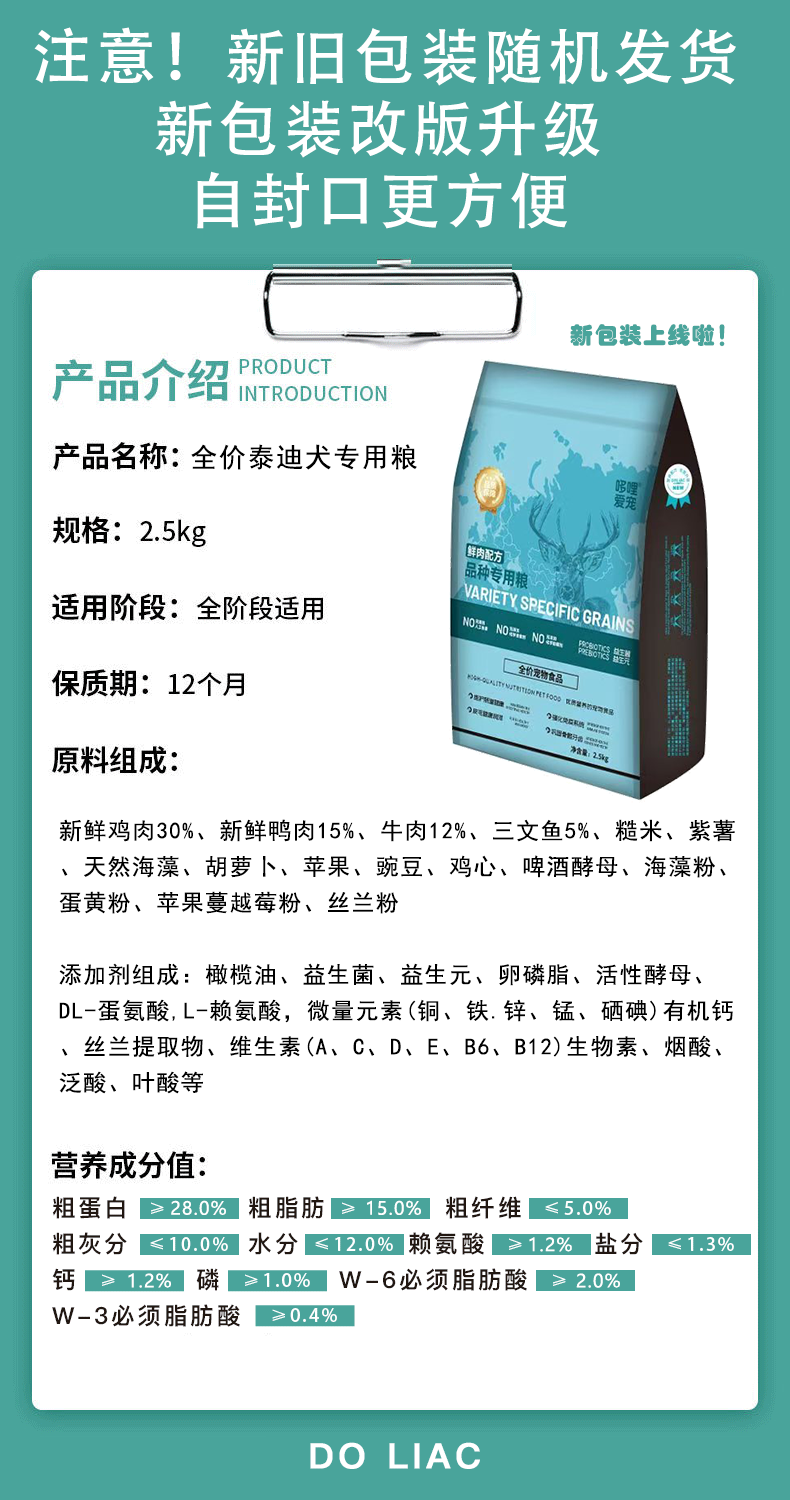 OIMG Duoli Loves Pets High-end Teddy Dog Food for All Stages of Puppies, Adult Dogs and Small Dogs 5 Teddy Food for All Stages 5Jin Jin is equal to 0.5kg (rich in probiotics)