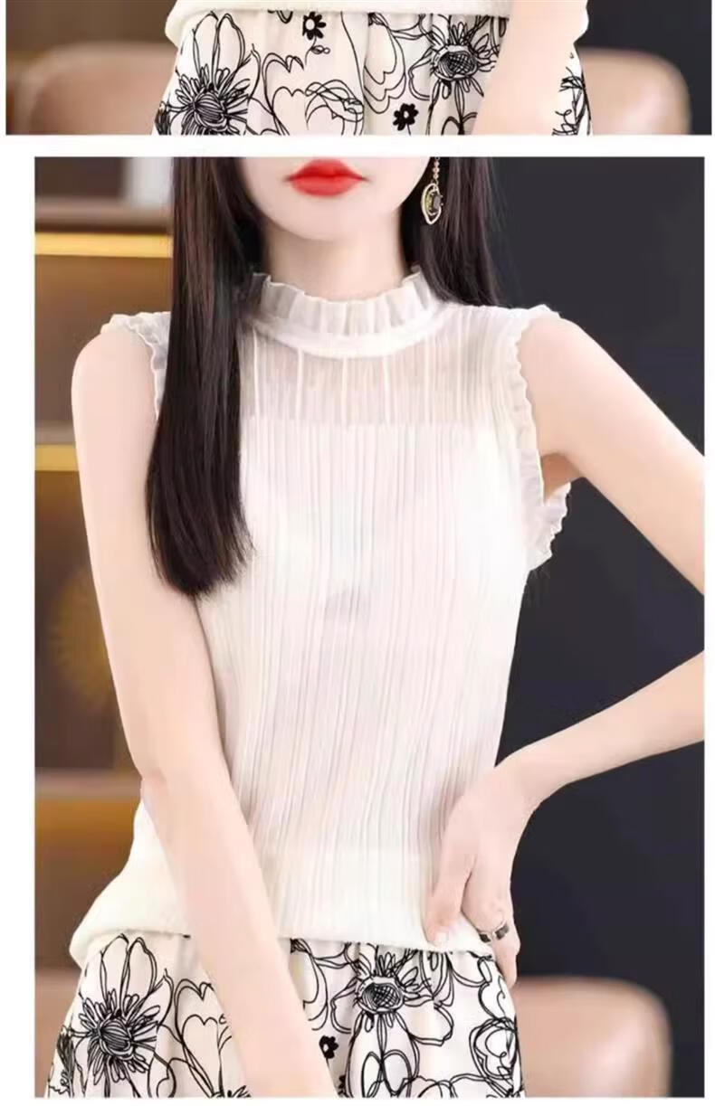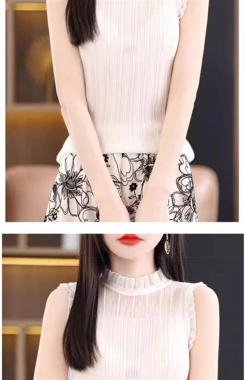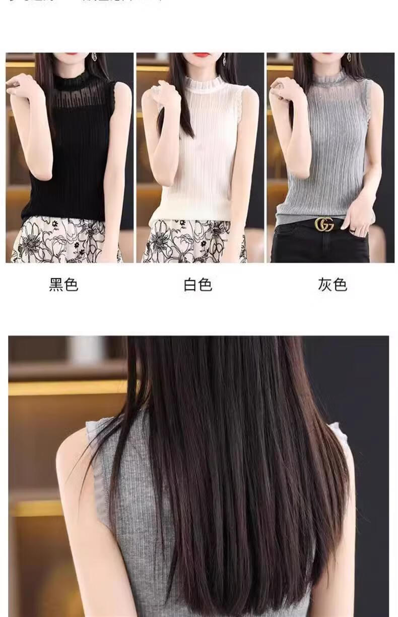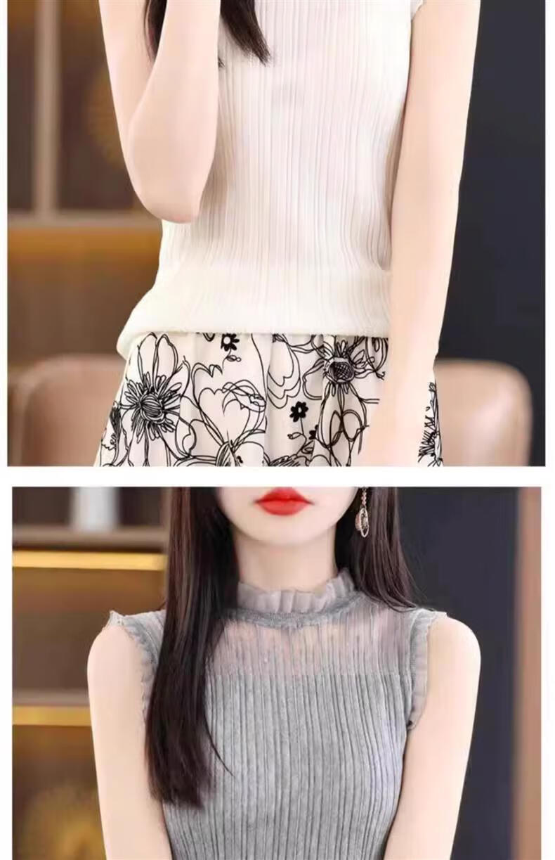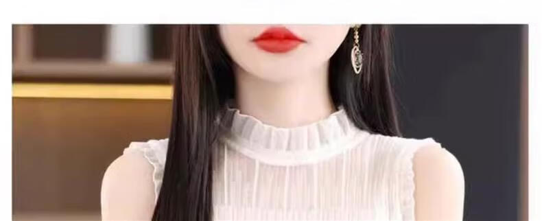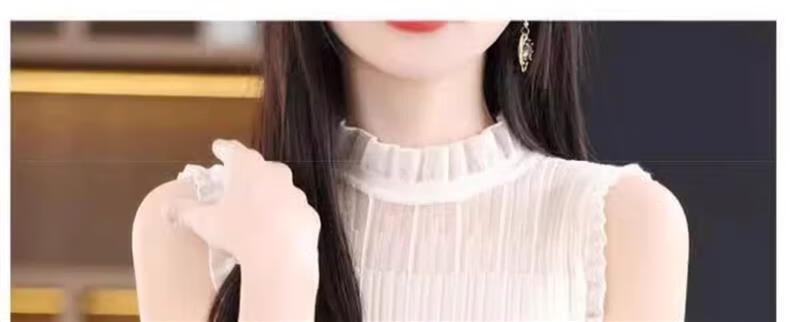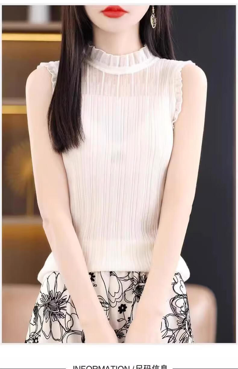 French Fashion Lace Collar Vest Women's Summer Mesh Half-Turtle Collar Bottoming Shirt Western Style Lace Inner Sleeveless Top White One Size Recommended 80-135 Jin Jin equals 0.5 kg