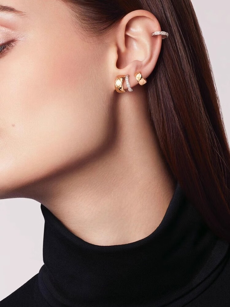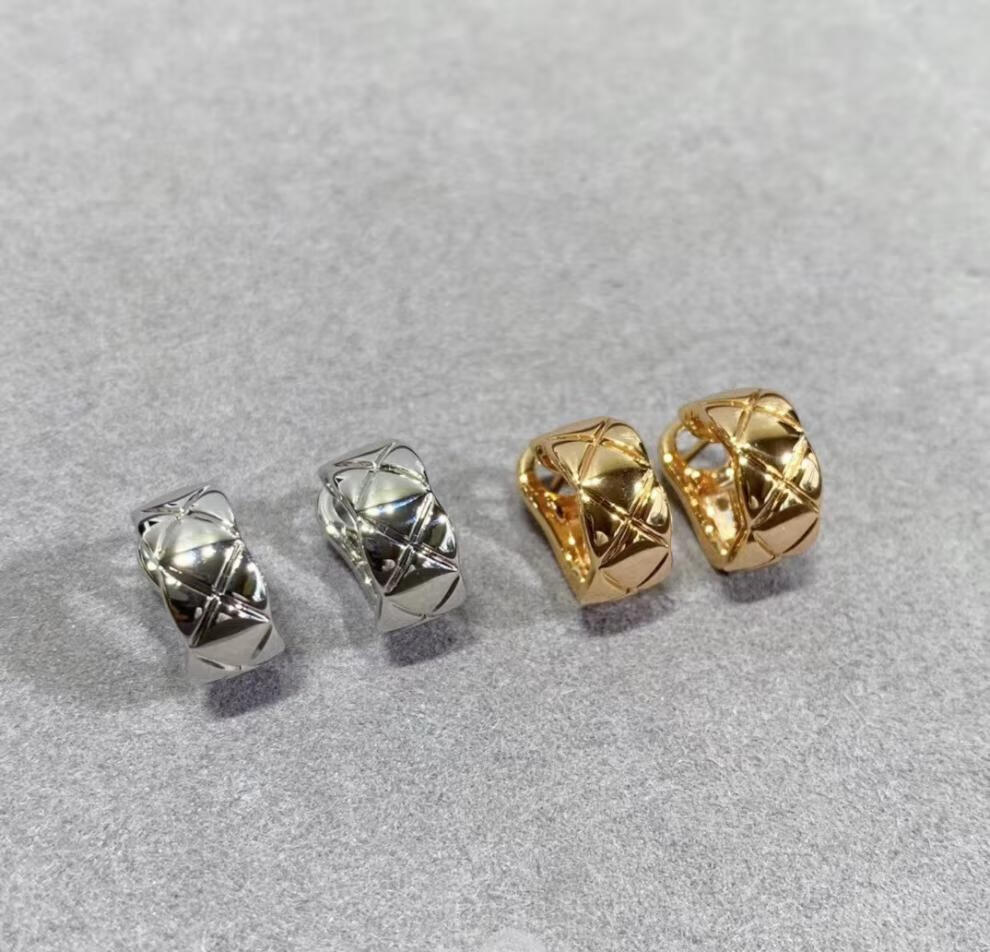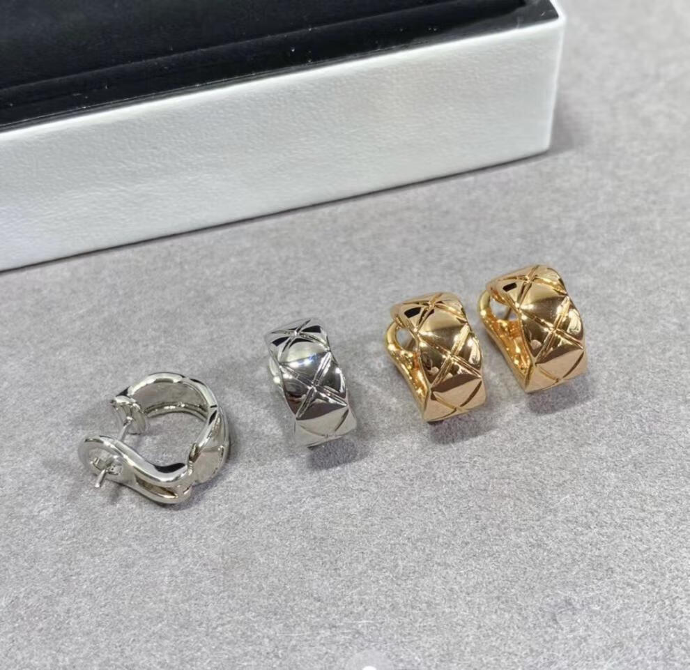 Fat Donglai's same style 18K gold earrings for women au rose gold coco earrings small fragrant ear buckles color gold earrings feel temperament (pair) rose gold