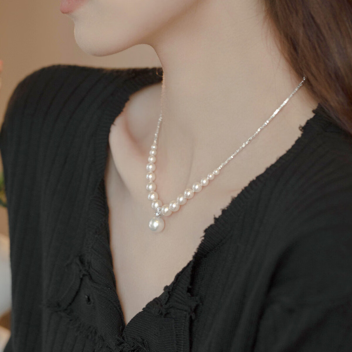 Juvia Pearl Necklace Queen Princess Style Broken Silver Necklace Shijia Pearl Niche Design High-end Clavicle Chain Broken Silver Pearl Necklace Gift Box